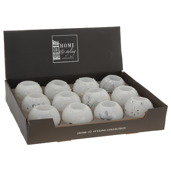 Üveg mécsestartó, fehér színben,Mérete: 8x8 CM.