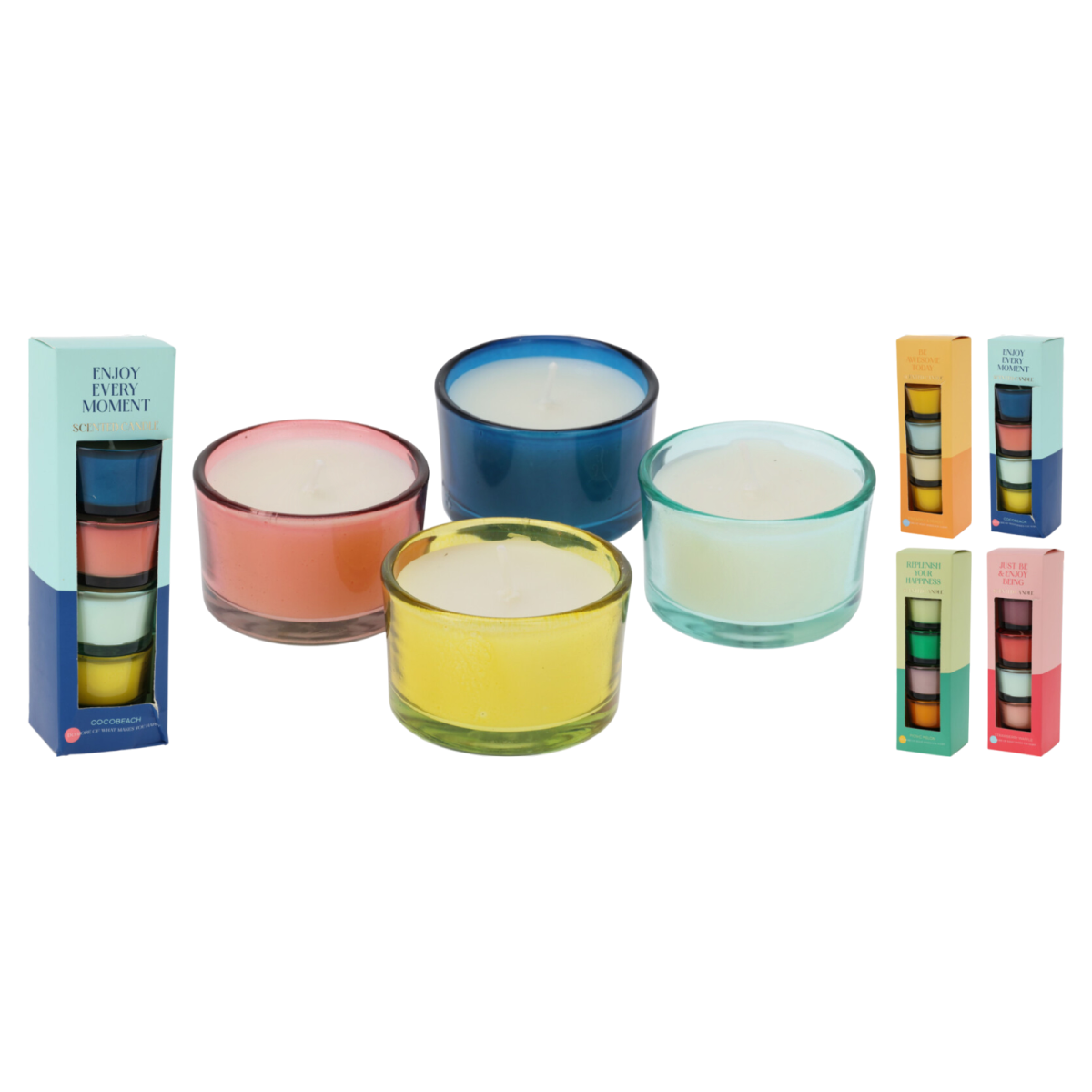 Ez a 4 darabos illatgyertya szett kellemes hangulatvilágítást és finom illatot biztosít a mindennapokban. A kompakt méretű, színes gyertyák jól mutatnak polcon, asztalon vagy dekorációs tálban, miközben egyenletesen égnek. A különböző gyümölcsös illatváltozatok lehetővé teszik, hogy hangulatodhoz vagy évszakhoz igazítsd a választást.