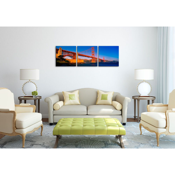 A Golden Gate az Amerikai Egyesült Államok második leghosszabb függőhídja. 1933. januárjában kezdték meg az építését, majd 4 évvel később adták át a gyalogos forgalomnak. Komplex, vászonkép mérete 155x50cm.