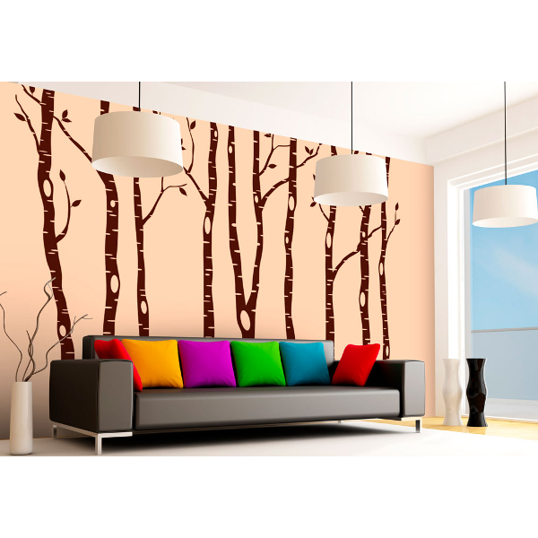 Nyírfa erdő földbarna vágott falmatrica 367x270cm - Képtartó,