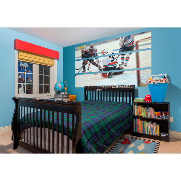 A csapatok 2 kapusból és 18 mezőnyjátékosokból állnak, egyszerre a pályán ebből 1 kapus és 5 mezőnyjátékos tartózkodik. A jégkorong igen intenzív, így a játékosok általában 45 másodpercenként váltják egymást. 3 részes, falmatrica, 200x130 cm-es.