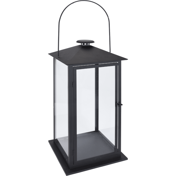 Lámpás fekete fém és üveg 29x29x62cm - Lámpás, szélcsengő,