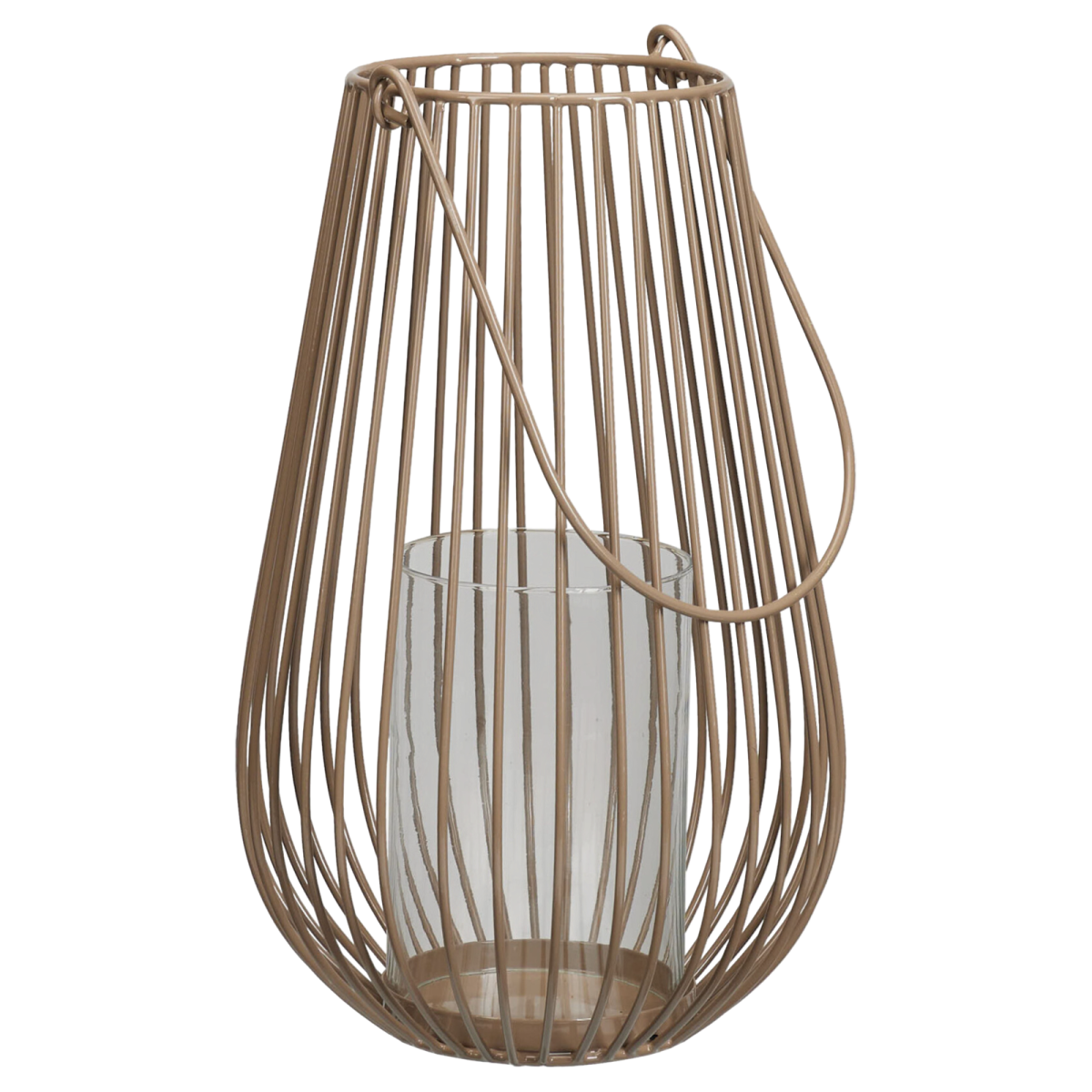 Ez a fém és üveg lámpás visszafogott, bézs színével természetes és elegáns hangulatot teremt beltéri, valamint fedett kültéri terekben, ahol nincs kitéve közvetlen időjárási hatásoknak. A karcsú, rácsos fémvázas kialakítás és a belső üveghenger biztonságos elhelyezést biztosít a gyertyának, miközben a fény kellemesen szóródik szét a környezetben. A felső fogantyúnak köszönhetően könnyen mozgatható vagy felakasztható.
