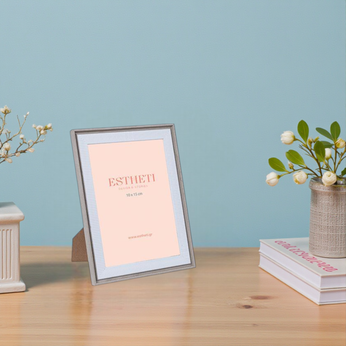 Ez a szürke-fehér színű képkeret ideális választás, ha 10 cm x 15 cm-es fotóidat szeretnéd ízlésesen kihelyezni.