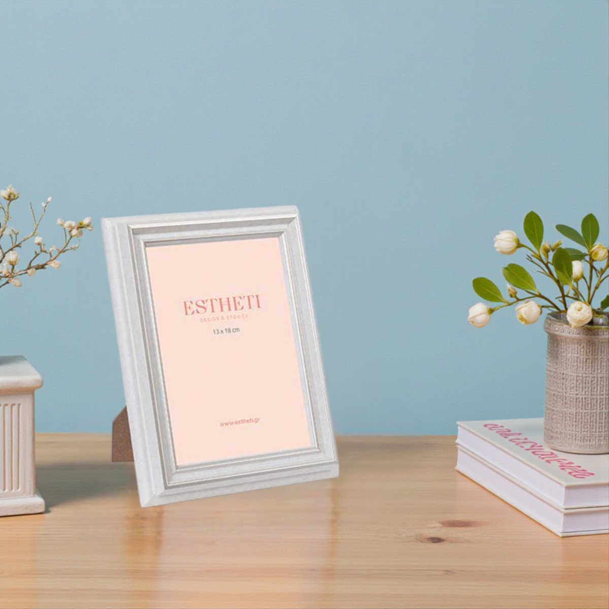 Ez a fehér–arany színű képkeret ideális választás, ha stílusosan szeretnéd kihelyezni kedvenc fotóidat. A polisztirol keret és az üveg előlap letisztult, elegáns megjelenést ad, miközben stabil tartást biztosít. Kompakt méretének köszönhetően könnyen elhelyezhető asztalon, komódon, polcon vagy párkányon.