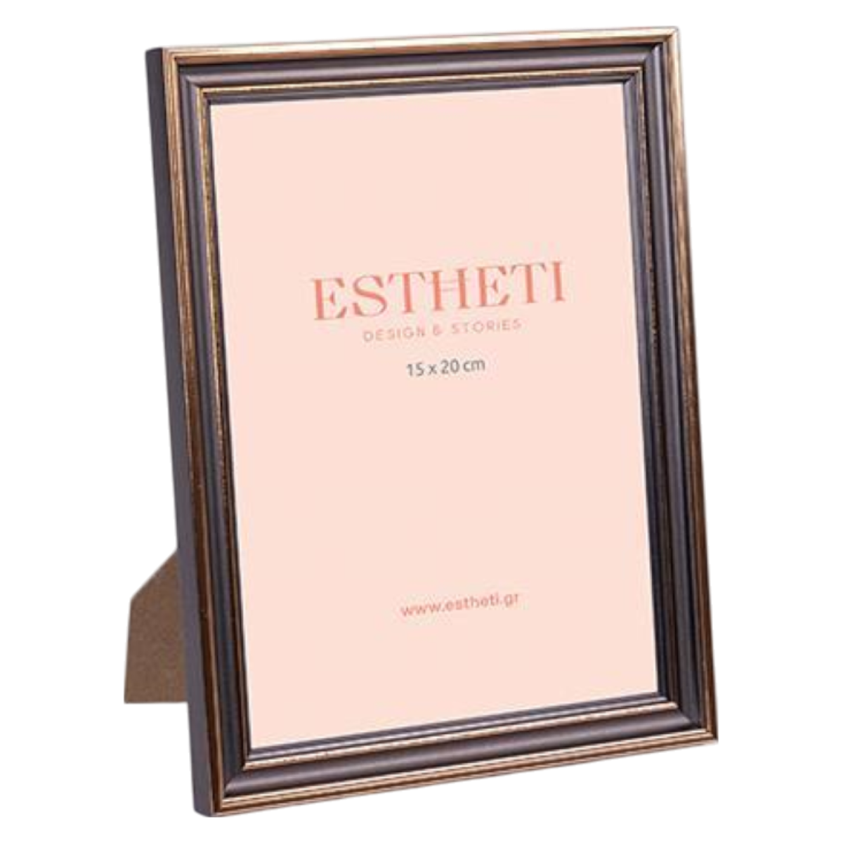Fekete színű, arany szegéllyel díszített műanyag asztali képkeret, amely egy darab 15×20cm-es fénykép elhelyezésére alkalmas. Praktikus választás kisebb képekhez, emlékekhez vagy grafikákhoz. Asztalon, polcon, párkányon vagy komódon is jól mutat, stabilan megáll és nem igényel semmilyen összeszerelést.