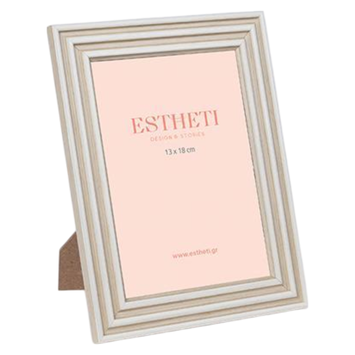 Barna színű képkeret fehér csíkozással, amely elegáns és otthonos megjelenést biztosít bármely helyiségben.Egy darab, 13x18cm méretű kép belehelyezésére alkalmas. A műanyagból készült keret nem igényel összeszerelést, azonnal használható.