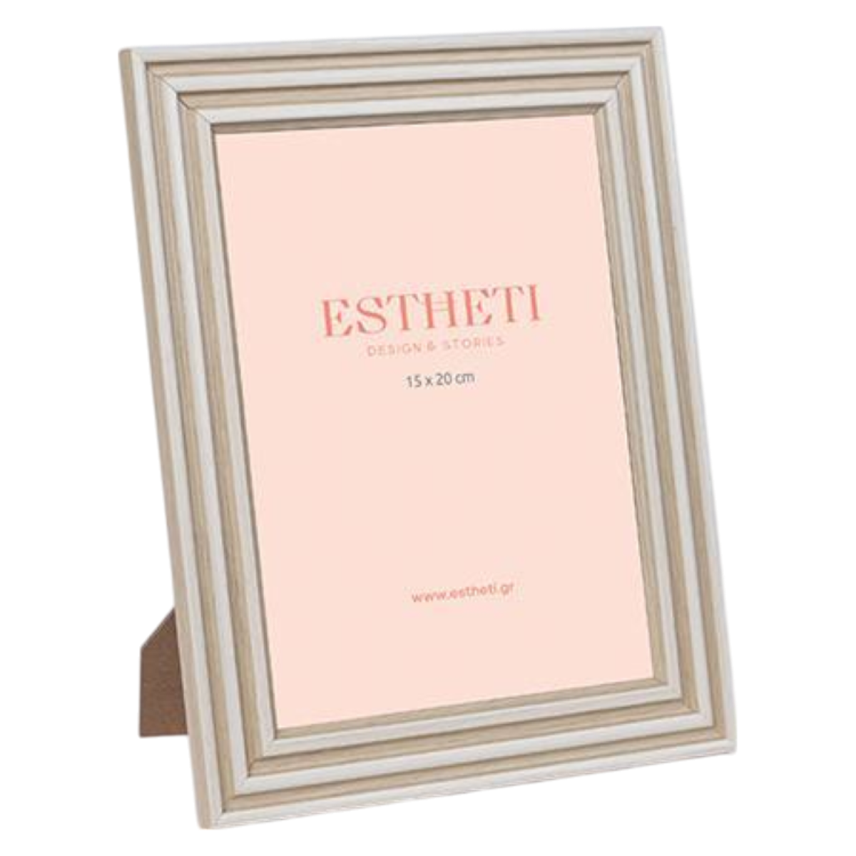 Barna színű képkeret fehér csíkozással, amely elegáns és otthonos megjelenést biztosít bármely helyiségben.Egy darab, 15x20cm méretű kép belehelyezésére alkalmas. A műanyagból készült keret nem igényel összeszerelést, azonnal használható.