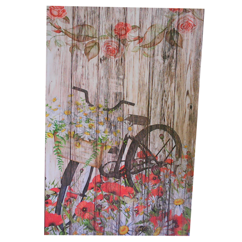 Fali kép provence board, virág és bicikli digitális nyomat. Mérete: 54x36cm.