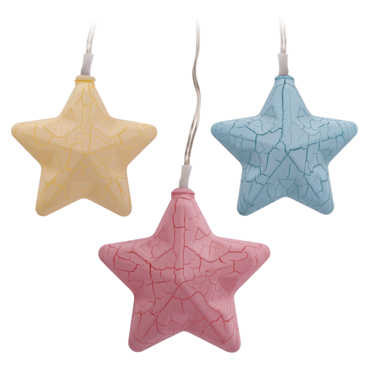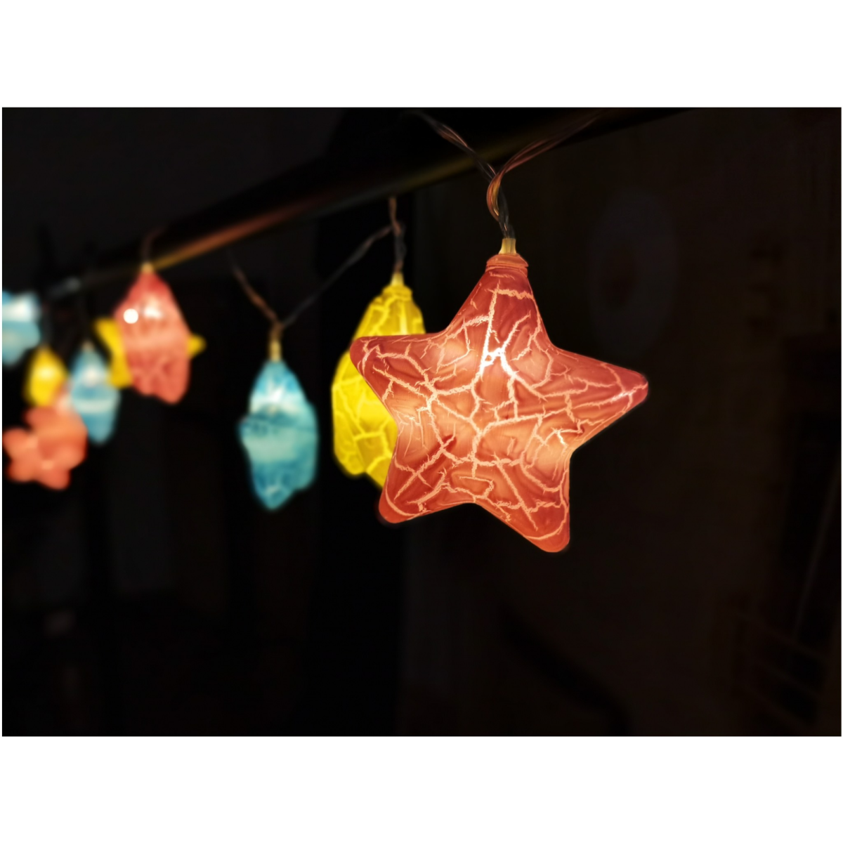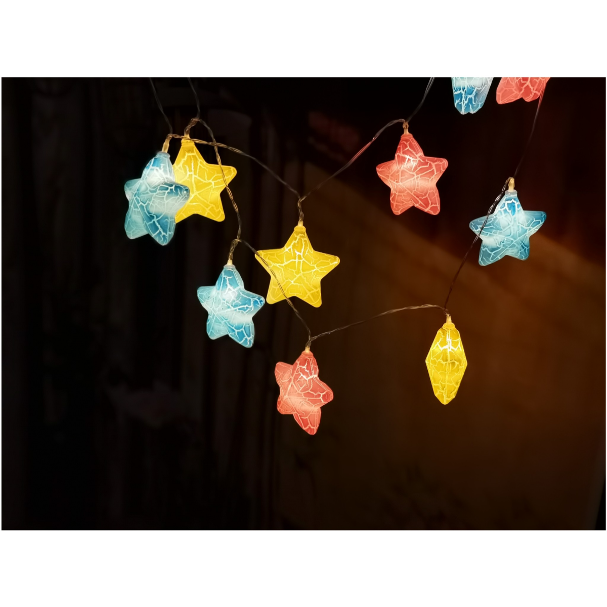 A színes műanyag csillagformák meleg, barátságos fényt árasztanak, és különösen jól mutatnak az ünnepi időszakban vagy bármilyen alkalmi dekoráció részeként.