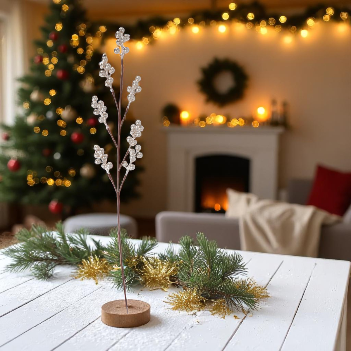 A 7 ágon több kis bogyó helyezkedik el, amely igazán gazdagon díszíti a terméket. A beépített drótnak köszönhetően az ágak hajlíthatók, így könnyedén formára igazíthatók koszorúkban, vázákban vagy asztaldíszekben.