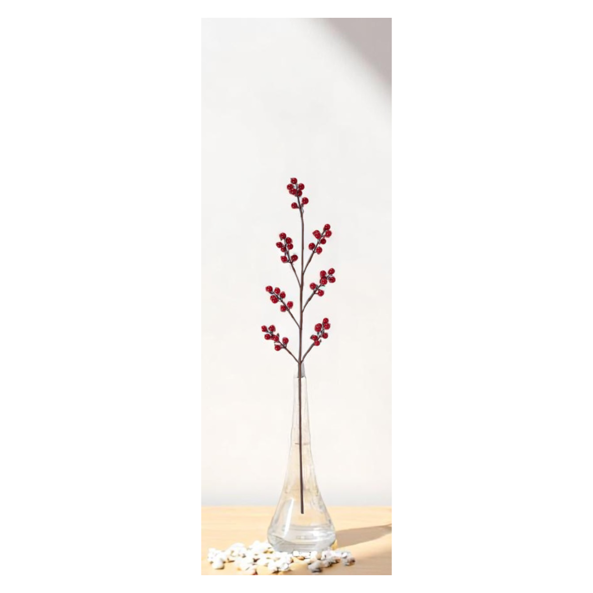 A 7 különálló ágon több kis bogyó található, így a gazdag bogyós díszítés térben is jól érvényesül.