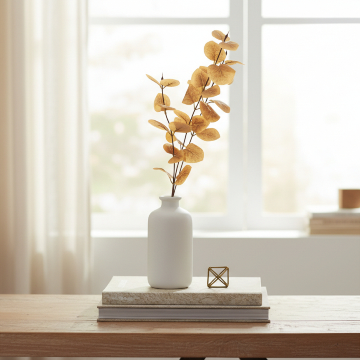 A 85 cm-es mű eukaliptusz ág kiváló választás, ha időtálló, elegáns és gondozásmentes zöld dekorációt keresel.
