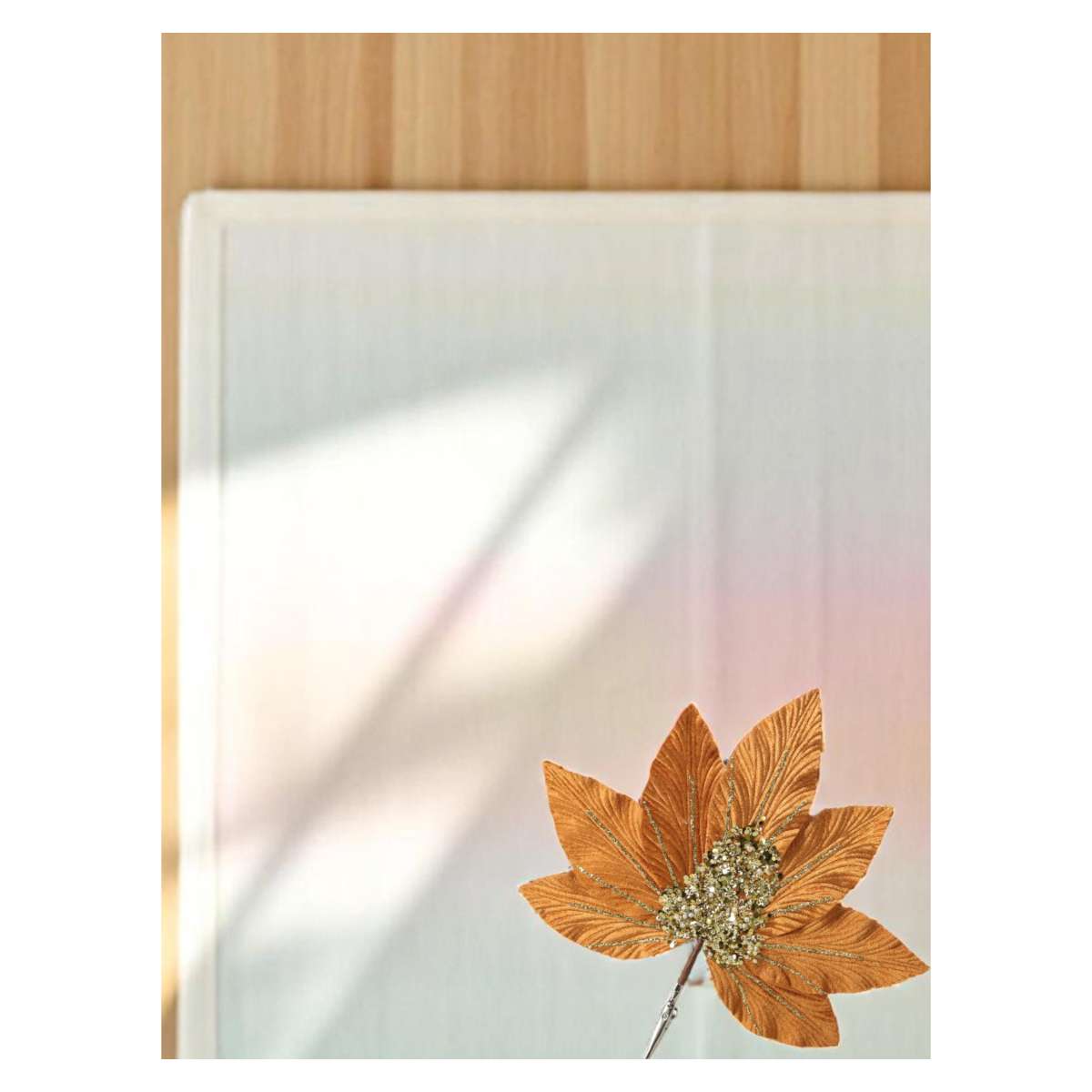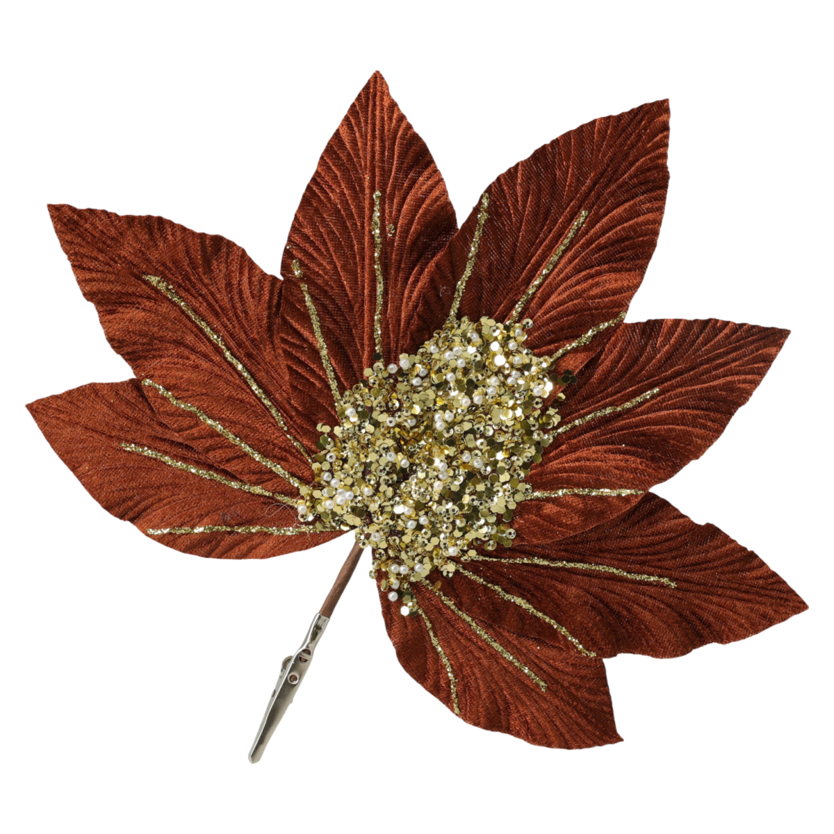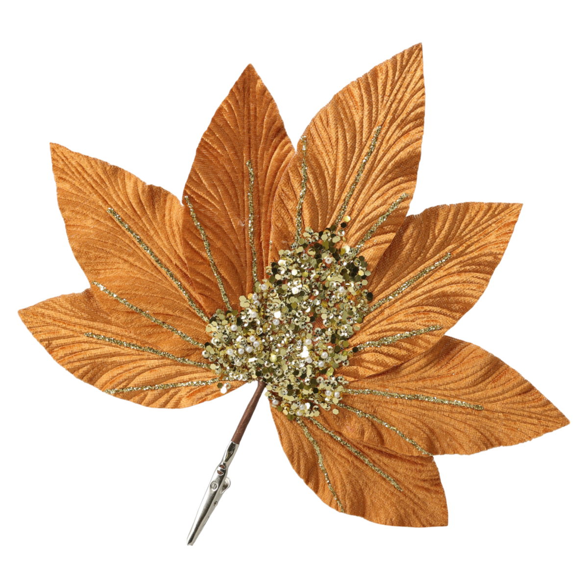 Ez a 25 cm-es méretű, dekoratív műnövény levél poliészterből és vasból készült, így formázható és könnyen illeszthető különféle kompozíciókba. Az arany és barna árnyalatok finom csillogása különösen ünnepi vagy őszi dekorációkhoz illik, de év közben is stílusos díszítőelem lehet vázákban, koszorúkban vagy asztali díszekben.