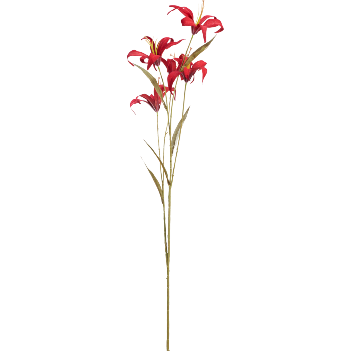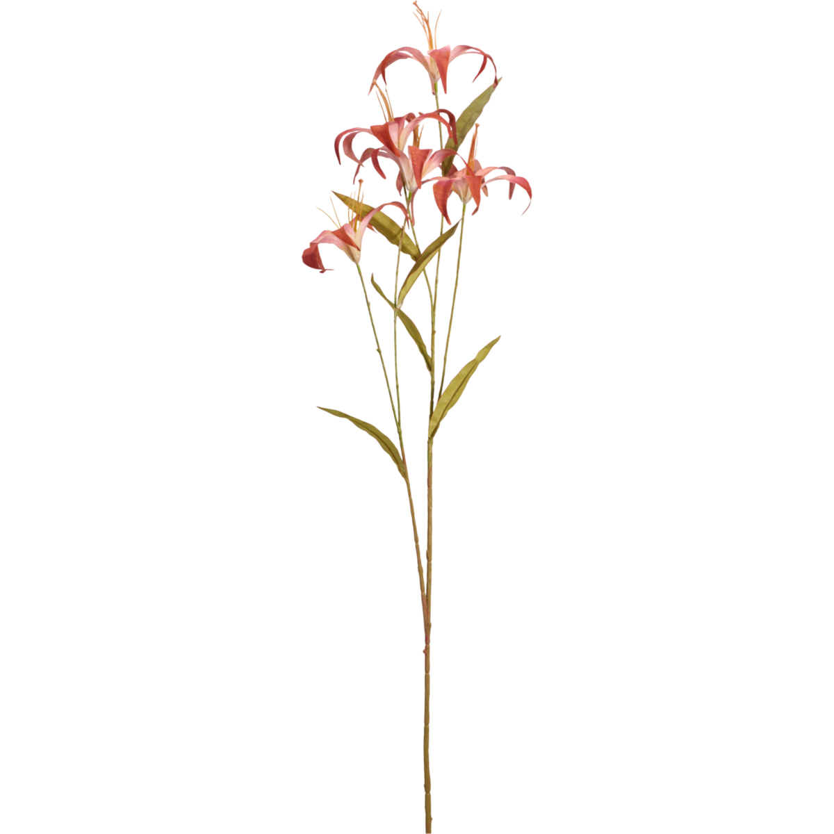 A 106 cm magas műnövény liliom látványos, hosszú szárú dekoráció, amely jól mutat önmagában egy magas vázában vagy csokorba rendezve más művirágokkal.