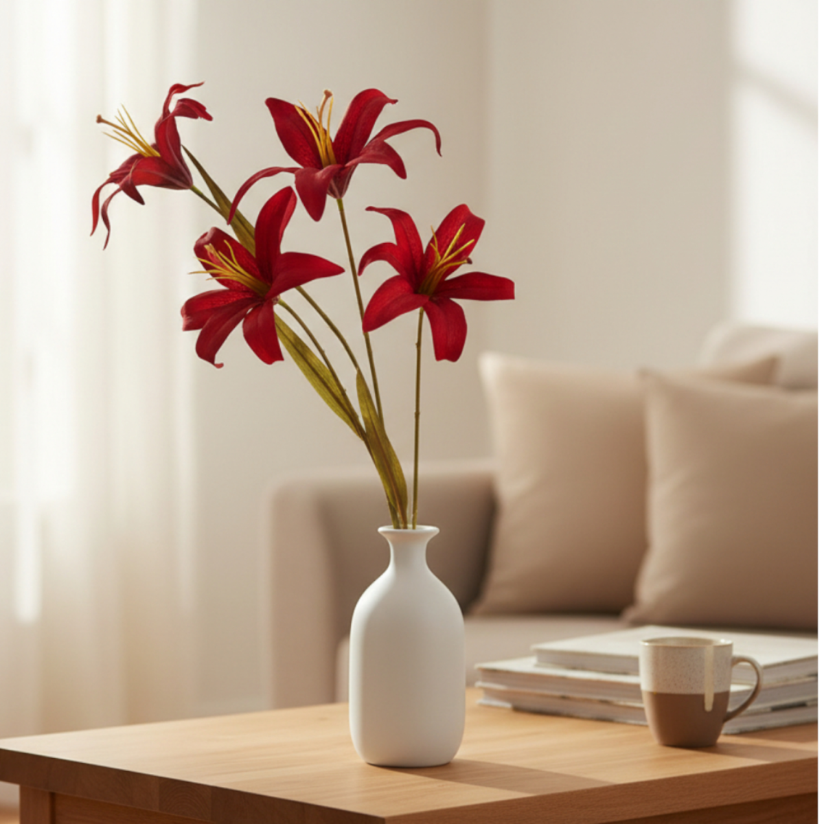 Ha látványos, gondozásmentes virágdekorációt szeretnél, ez a liliom tökéletes választás beltéri díszítéshez.