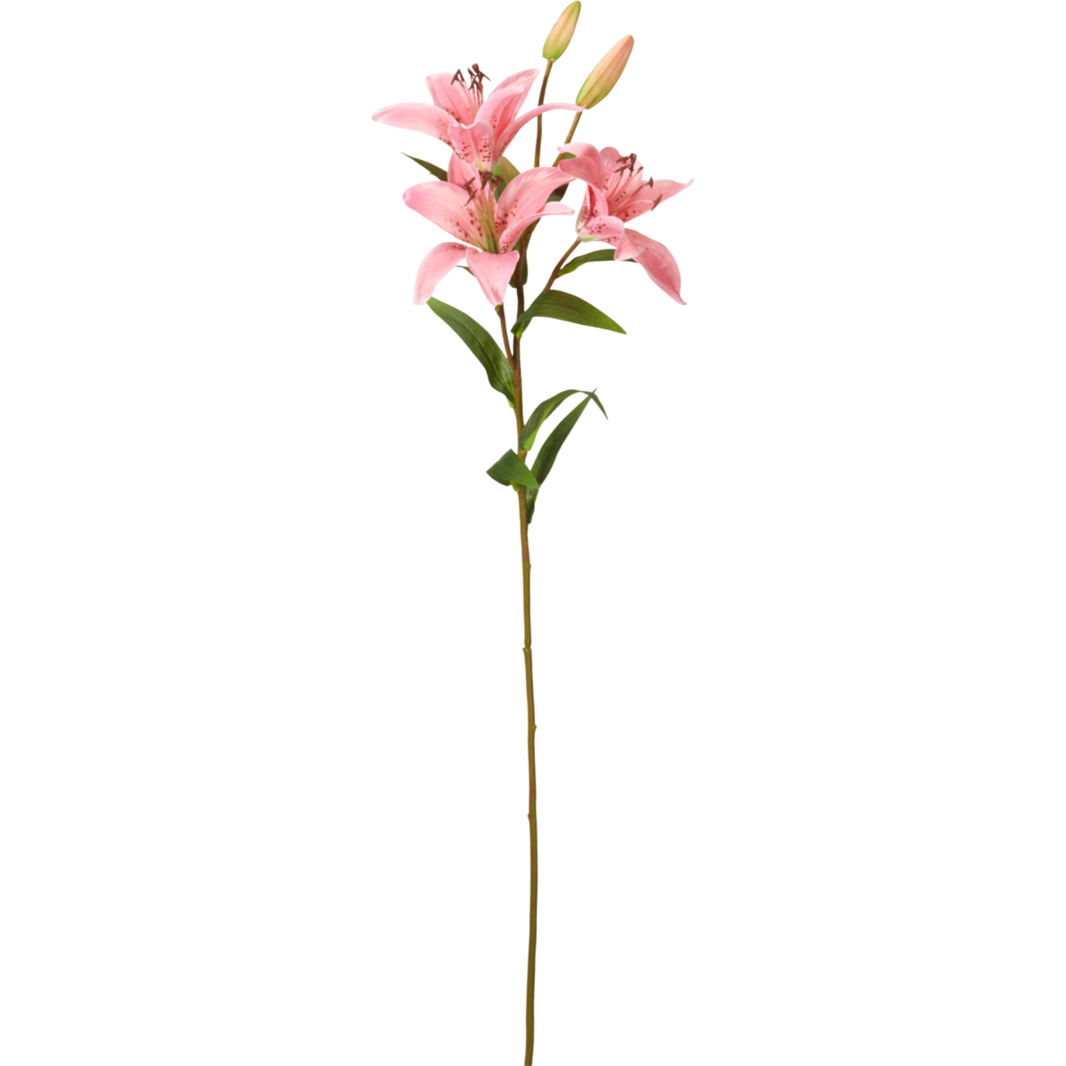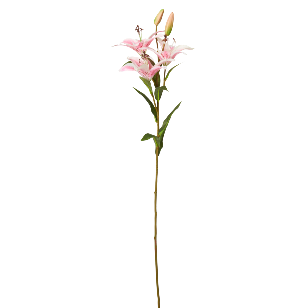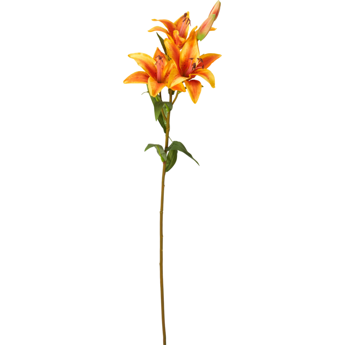 Ez a 82 cm magas mű tigrisliliom látványos virágfejeivel és gazdag levélzetével igazi hangsúlyos díszítőelem lehet bármely helyiségben.