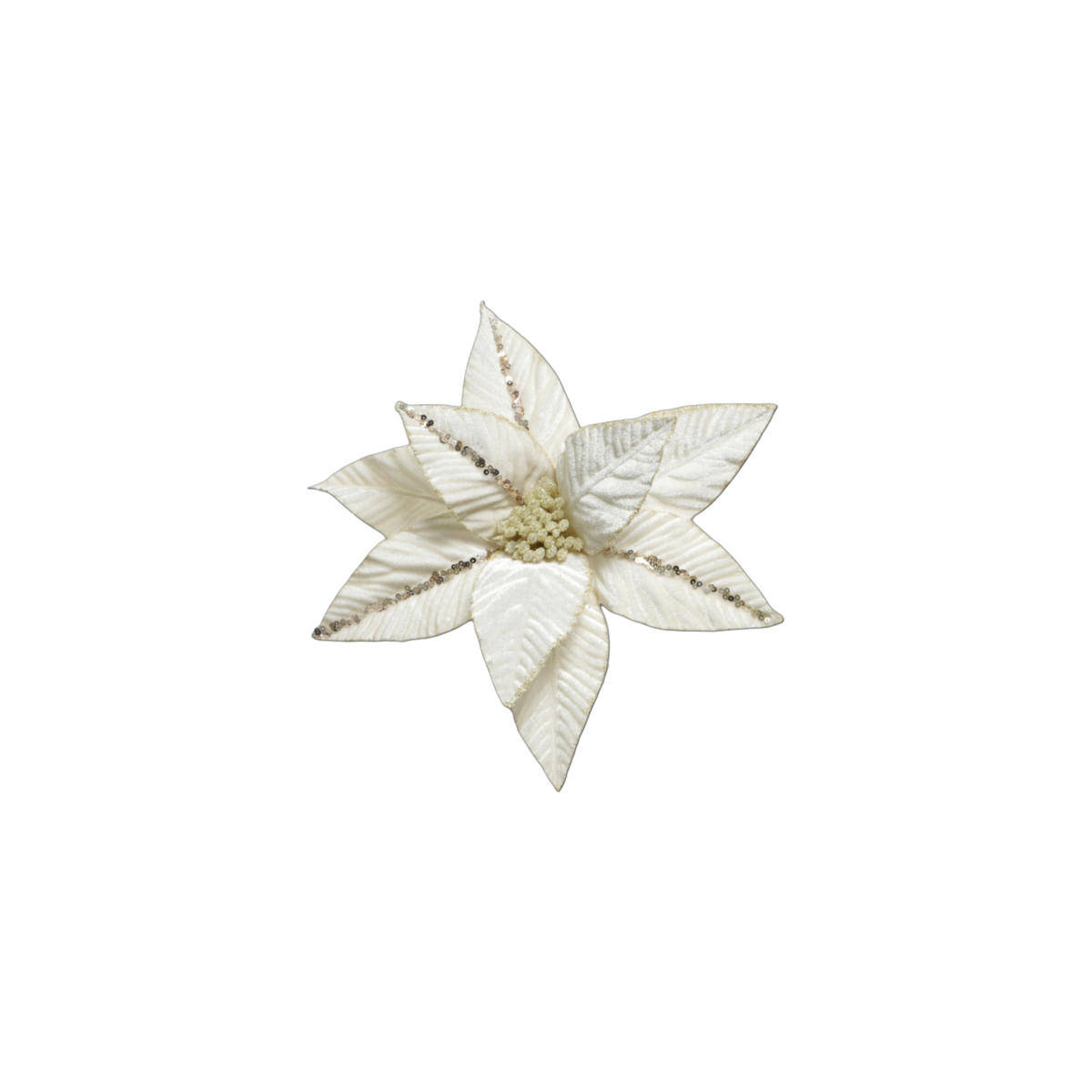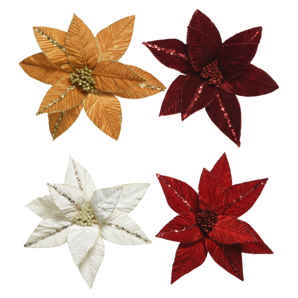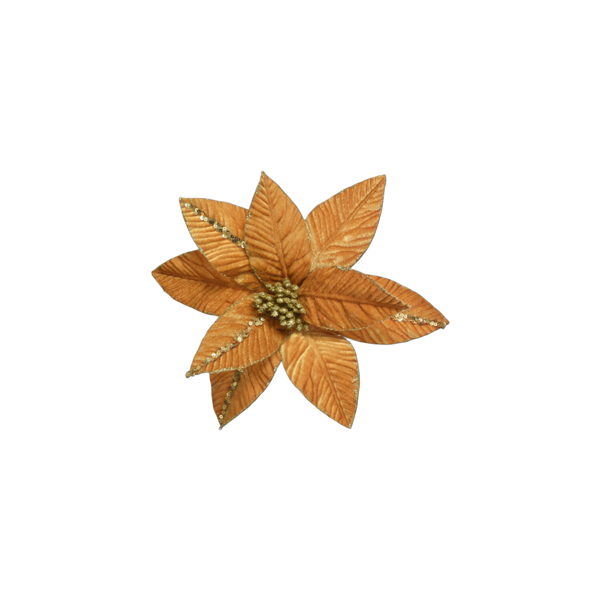 A finoman kidolgozott szirmok és a csillogó díszítés meleg, ünnepi hangulatot kölcsönöz bármely kompozíciónak.
