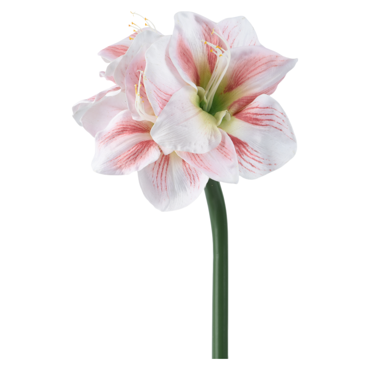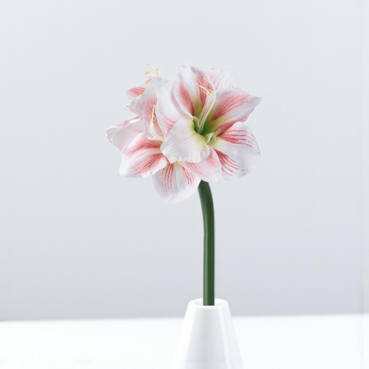 Ez a 60 cm magas művirág elegáns, fehér-piros cirmos árnyalatú szirmaival és részletgazdag kidolgozásával kiváló választás, ha hosszú távon szeretnél friss, dekoratív virágdíszt otthonodba.