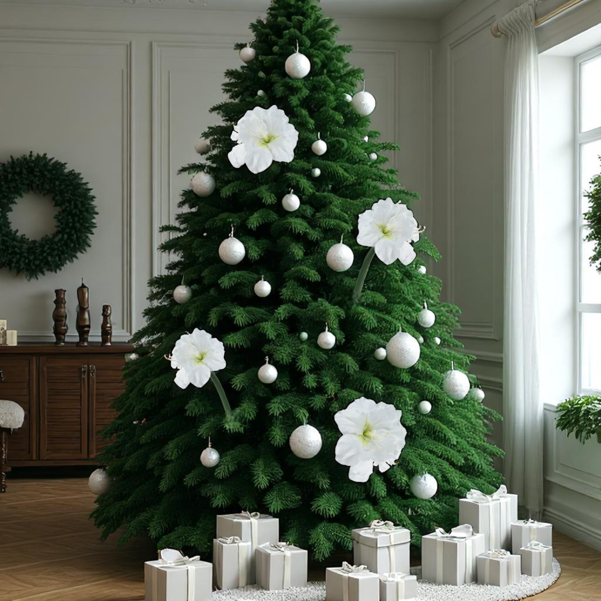 Ez az élethű művirág finom fehér szirmokkal és elegáns formavilággal hozza el az ünnepi időszak kifinomult hangulatát. A 60 cm-es méret lehetővé teszi, hogy könnyedén váza- vagy koszorúdíszként, illetve más dekorációs megoldásként is használhasd. A többfejes kialakítás még látványosabbá teszi.