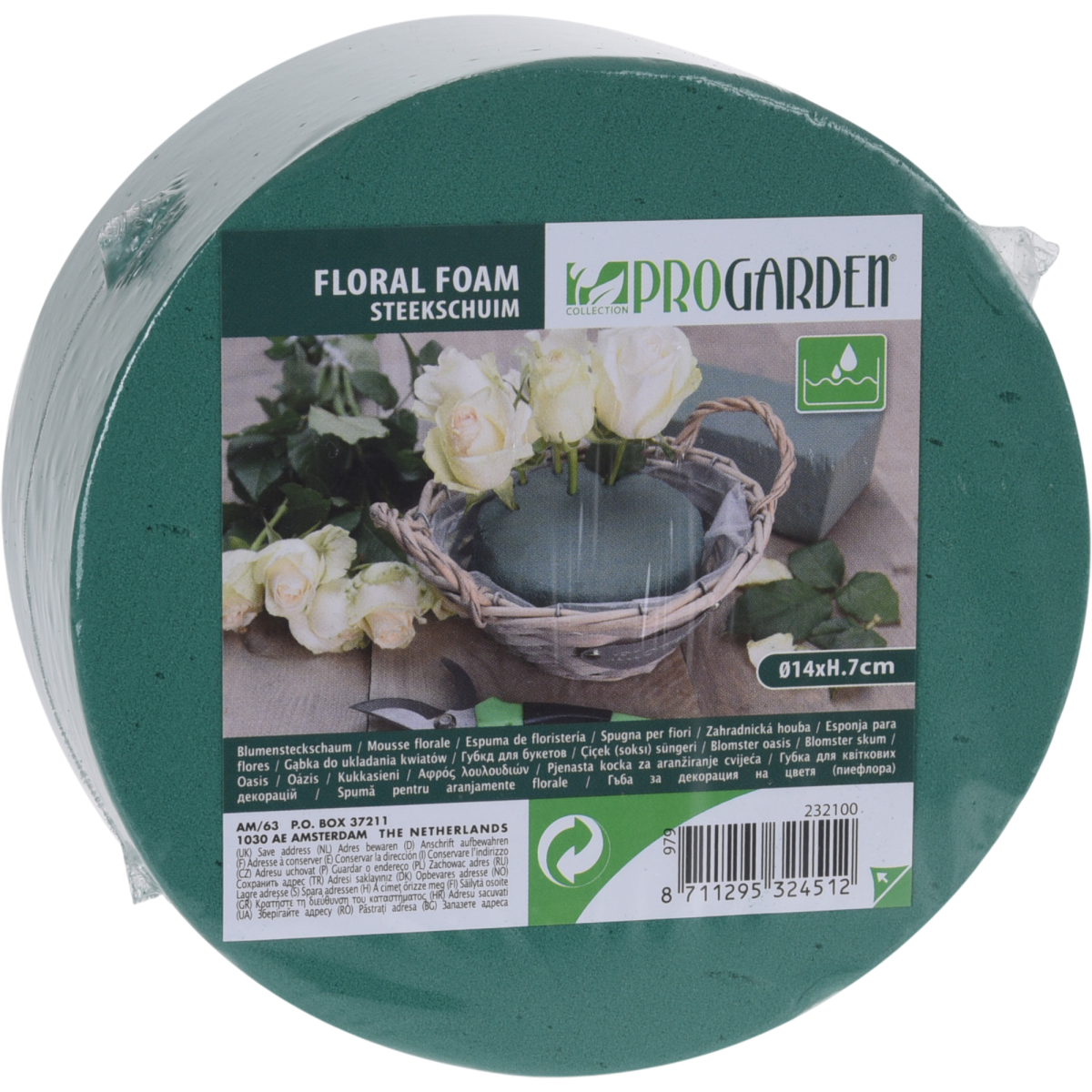 Ez a kerek tűzőhab ideális választás virágkötészeti munkákhoz, legyen szó friss virágokról vagy könnyű művirágokról. Poliuretán anyaga jól formázható és megtartja a beleszúrt szárakat, így stabil alapot ad kisebb dekorációs elrendezésekhez. A 7 cm magas, 14 cm átmérőjű változat különösen jól használható tálakba, kosarakba vagy kisebb asztaldíszekhez.