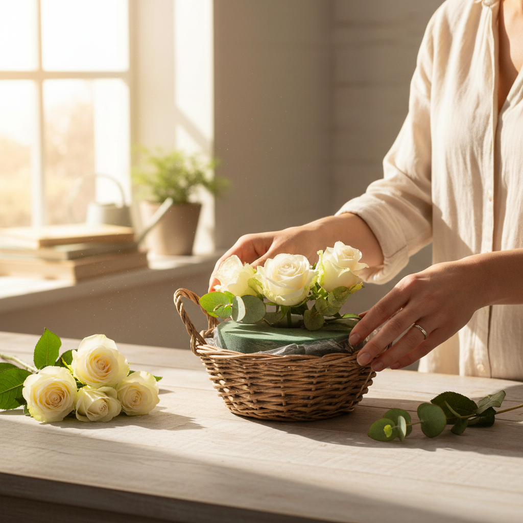 🌿 Friss virágok tűzéséhez – stabil rögzítés kisebb kompozíciókhoz