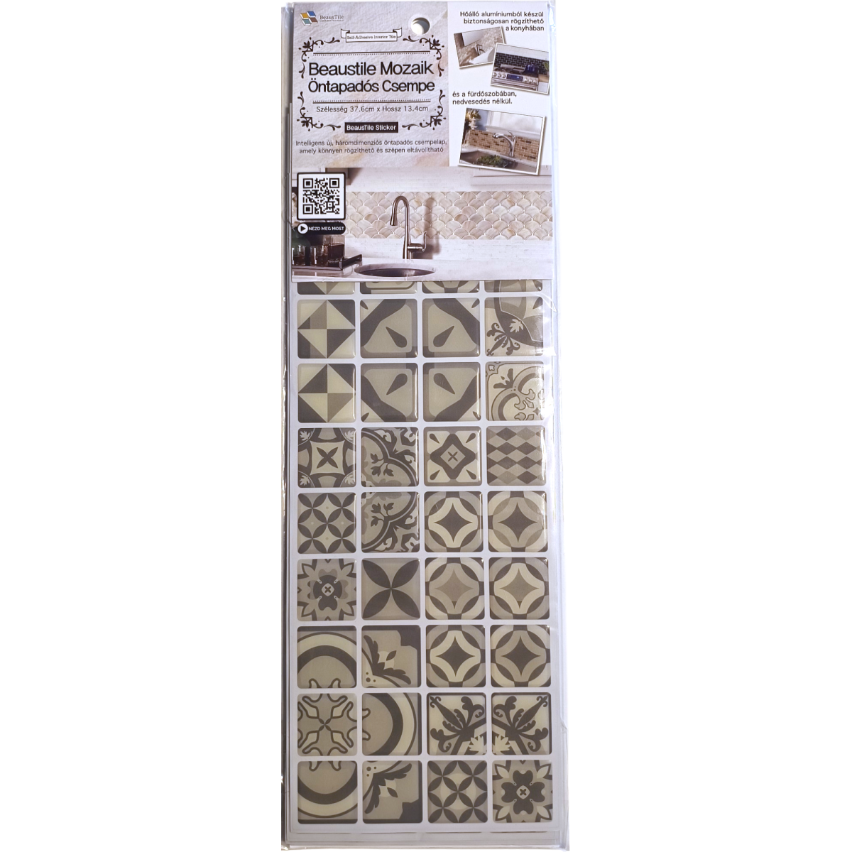 A Beaustile öntapadós csempematrica kiváló megoldást nyújt konyhák, fürdőszobák falának felújítására, illetve bútorok vagy használati tárgyak dekorálására. Ragasztós hátoldallal rendelkezik, így egyszerűen és könnyen átalakíthat bármilyen sima vagy csempézett falfelületet, illetve bútorfelületet. A termék olló vagy kés segítségével méretre szabható, könnyen és szépen felhelyezhető ívelt felületekre, szögletes falakra és sarkokba is. A Beaustile csempematrica alumínium fóliára van nyomva, 120 C-fokig hőálló, ezért felhasználása konyhákban is biztonságos. 4 db/csomag kiszerelésben értékesítjük.