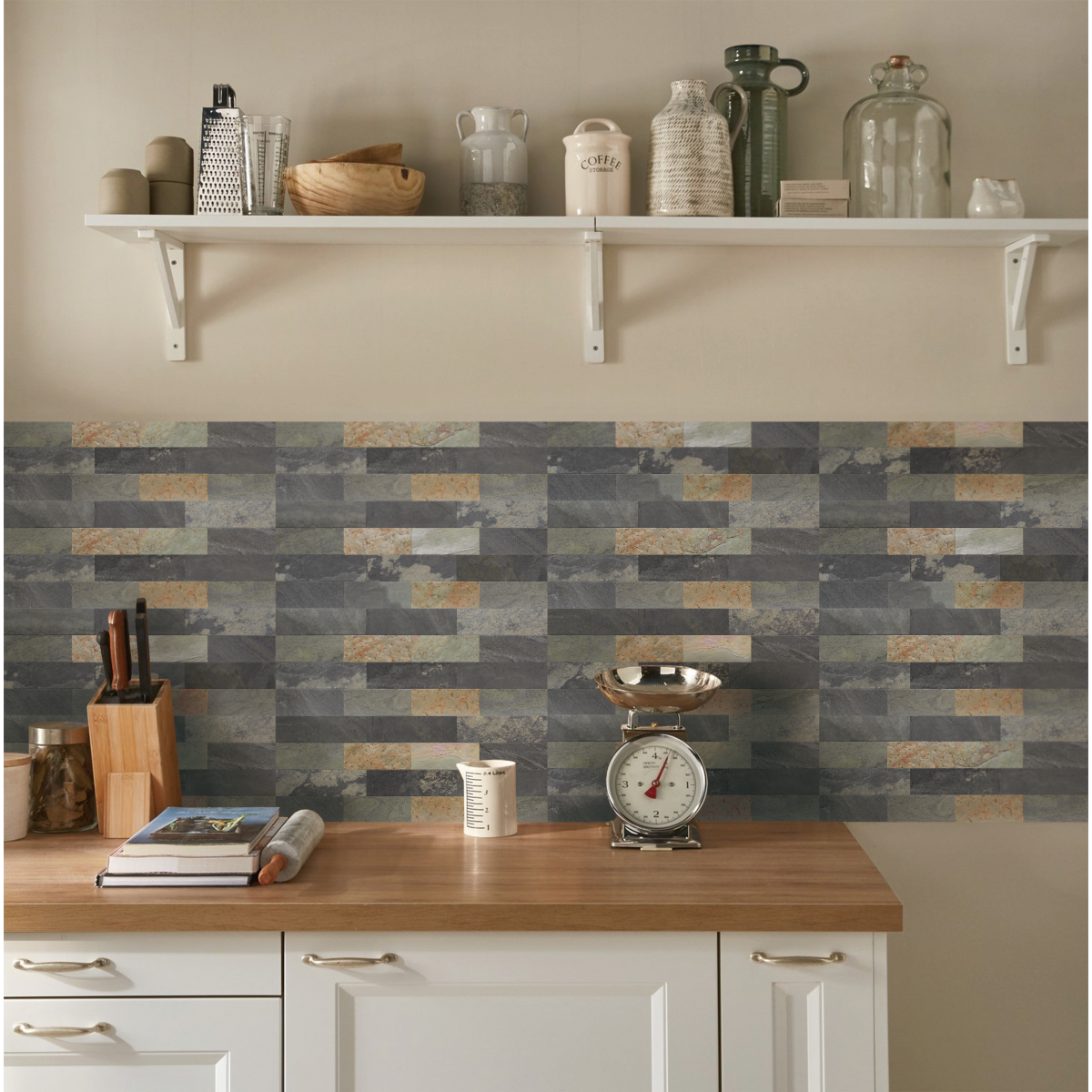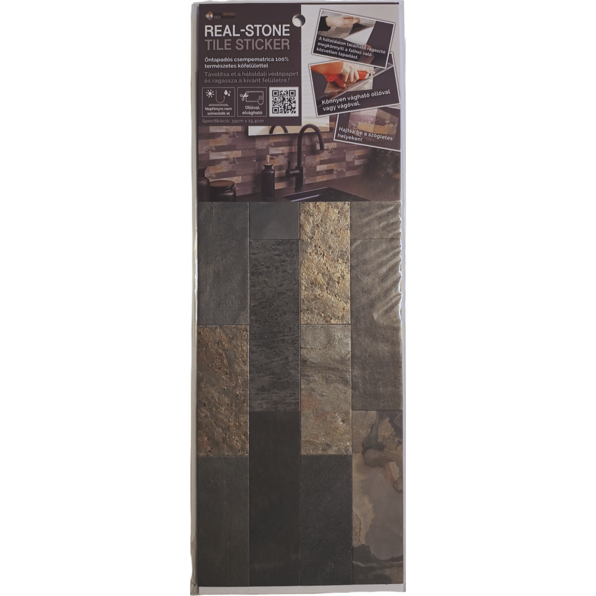 A Real Stone Tile Sticker egy természetes kőből készült csempematrica, amely kiváló megoldást nyújt konyhák, szobák falának felújítására, illetve bútorok vagy használati tárgyak dekorálására. Ragasztós hátoldallal rendelkezik, így egyszerűen és könnyen átalakíthat bármilyen sima- vagy csempézett falfelületet, illetve bútorfelületet, a termék olló vagy kés segítségével méretre szabható, könnyen és szépen felhelyezhető ívelt felületekre, szögletes falakra és sarkokba is. A Real Stone csempematrica 130 C-fokig hőálló, ezért felhasználása konyhákban is biztonságos.