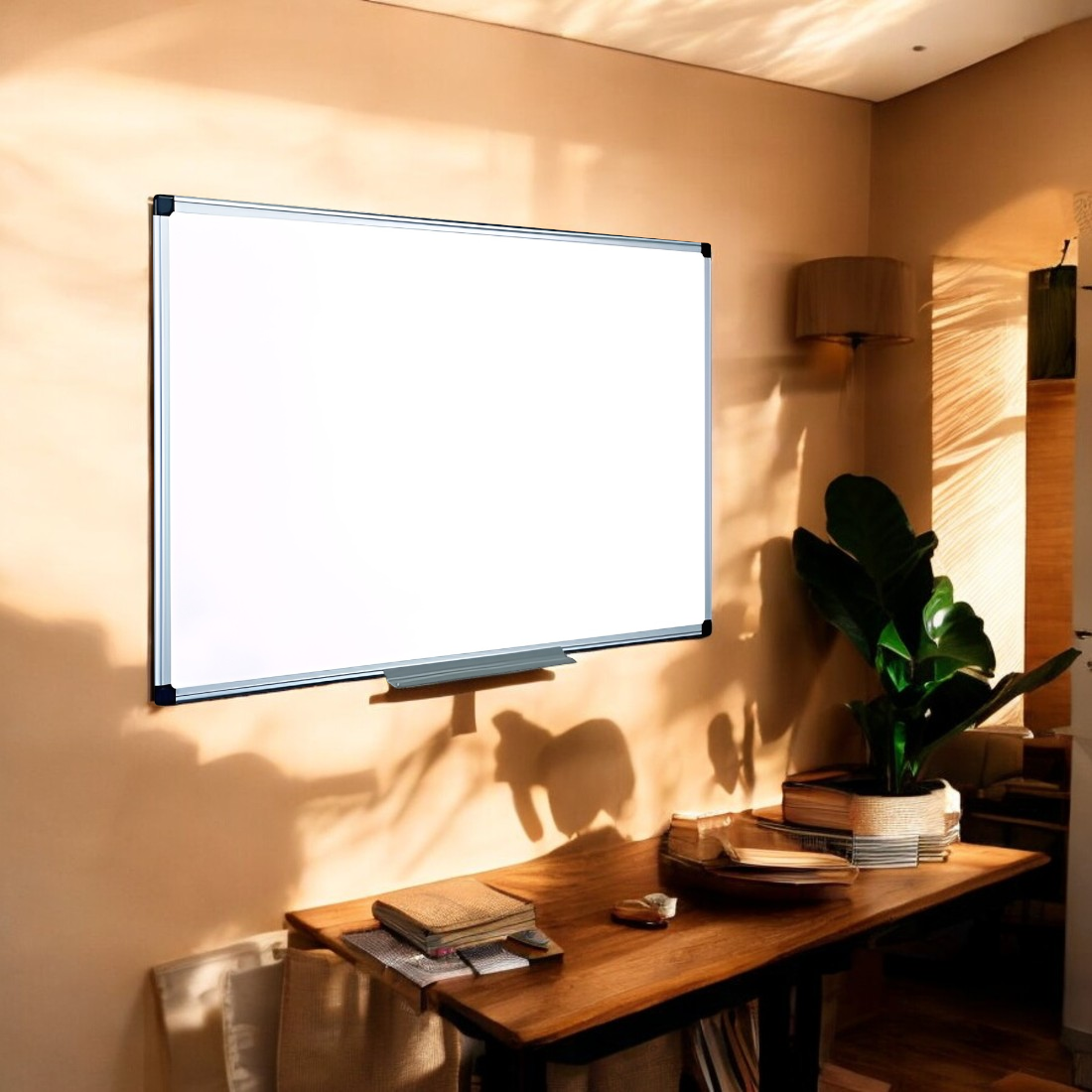 Kiváló minőségű fehér tábla mágneses felülettel és fém kerettel. 30 cm x 45 cm-es mérete révén otthoni és irodai használatra egyaránt alkalmas. Mágneses felületének köszönhetően fontos jegyzetek és egyéb papírok elhelyezhetők rajta egy mágnessel, hogy azok mindig szem előtt legyenek. A csomag rögzítő készletet tartalmaz.