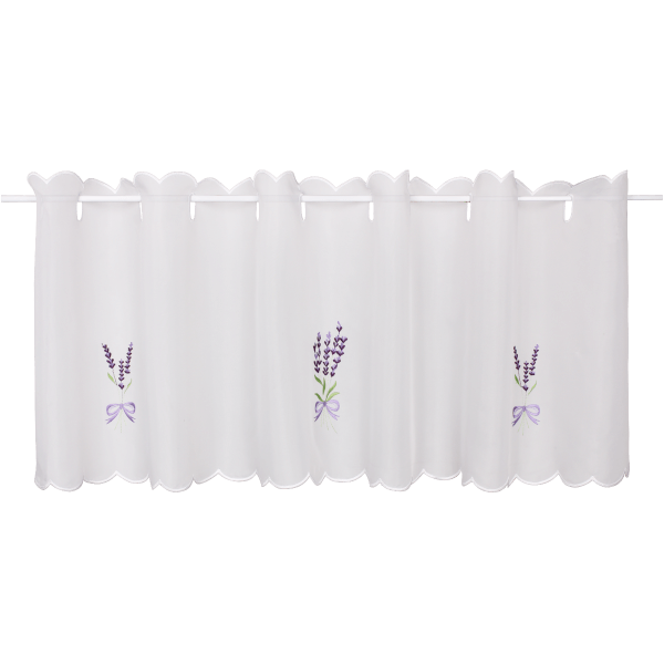 KÁVÉHÁZI FÜGGÖNY 45X156CM LEVENDULA MINTÁS, FEHÉR