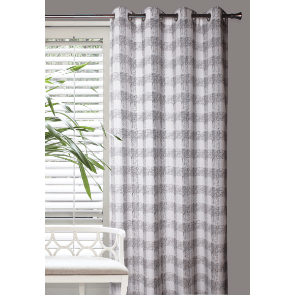 Picante fekete gumírozott kockás sötétítő függöny. Mérete 140x245 cm.