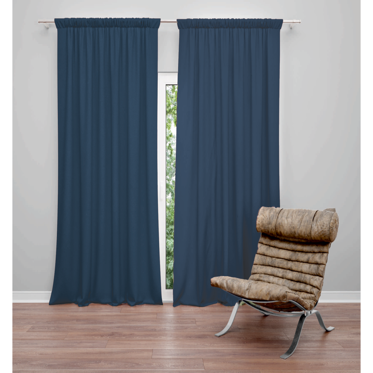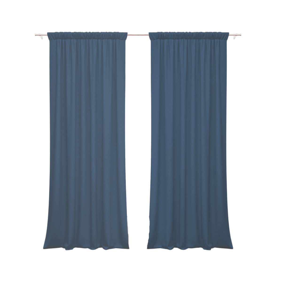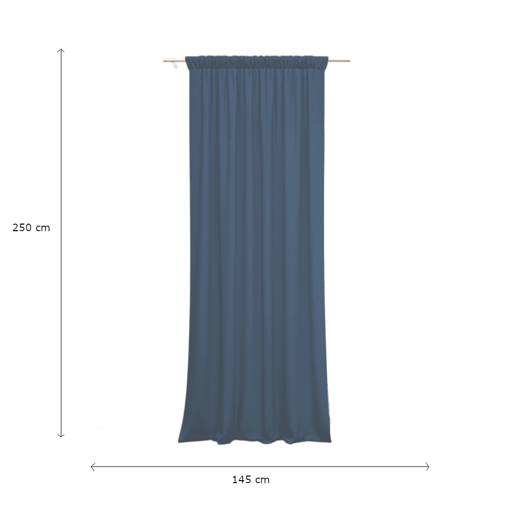 Készfüggöny kék színben, rejtett füles behúzóval.