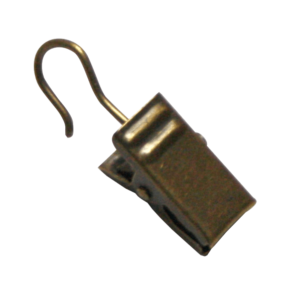 Fém csipesz, fém akasztóval függönykarikákhoz, 10db, arany antik színben.