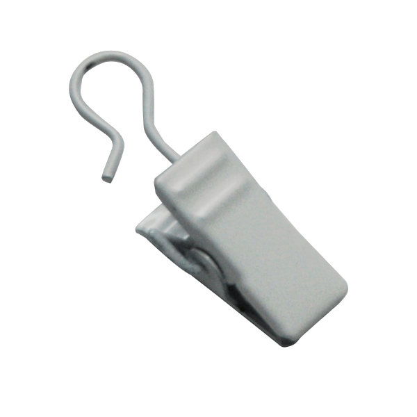 Fém csipesz, fém akasztóval függönykarikákhoz, 10db, fehér színben.