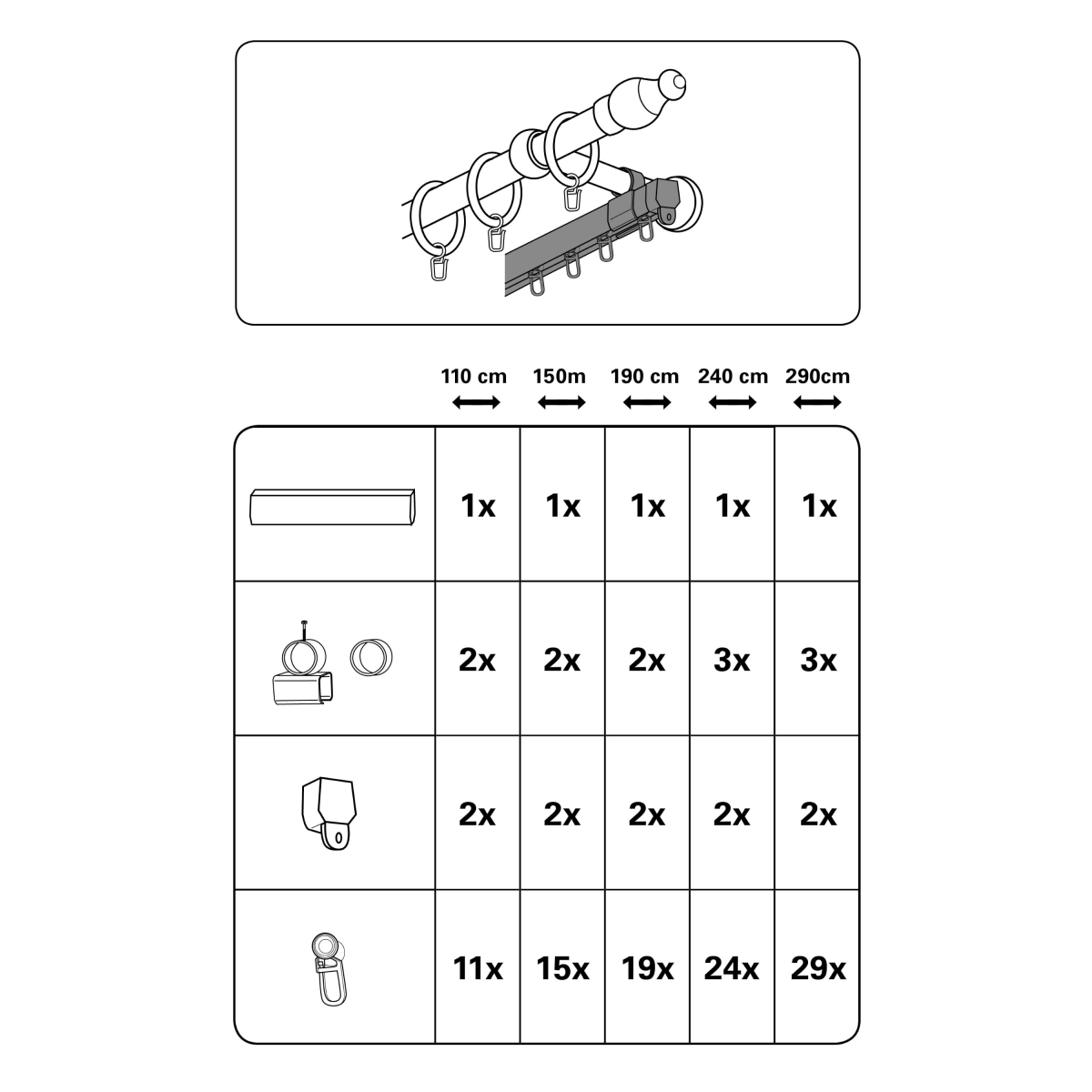 Duplázósín fa karnisokhoz. Használatával 2 rétegű függöny kompozíciók is egyszerűen létrehozhatók. Kiegészítő fém sín, másod rúdként is alkalmazható fa karnisok esetében. Mérete mindig 10 cm-rel rövidebb mint a karnisrúd, amihez kapcsolódik.