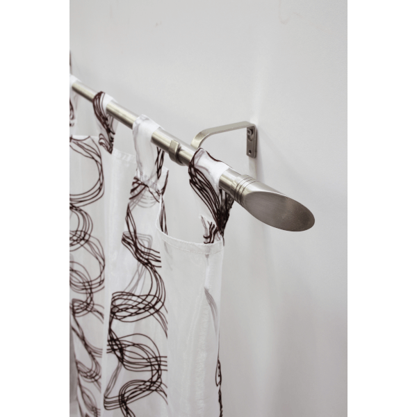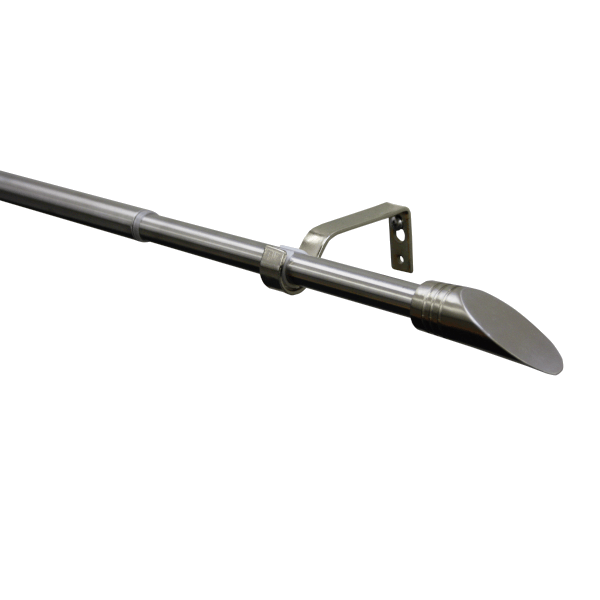Ellipse karnisrúd fém 190-340cm, átmérője: 19/16mm, kihúzható, fém konzollal és fém végfejekkel, rögzítő anyaggal együtt, konzol hossza (a függönyrúd faltól való távolsága) 8 cm, nemesacél hatással és függönykarika nélkül értékesítjük.