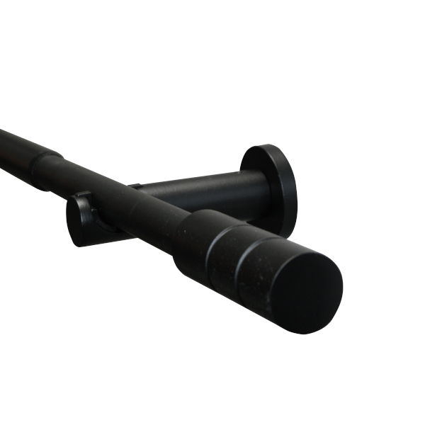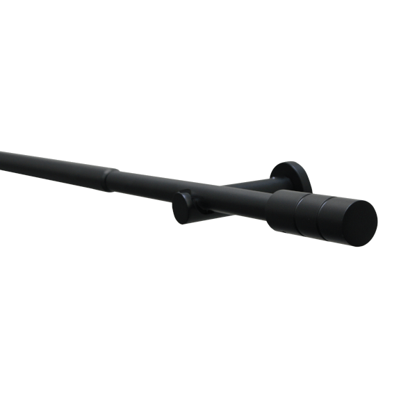 Kreta karnisrúd fém 190-340cm, átmérője: 19/16mm, fém, kihúzható, 3 nyitott konzollal, rögzítőanyaggal, végzárókkal, a tartó hossza (a függönyrúd faltól való távolsága) 7,5cm, matt fekete színben, függönykarika nélkül értékesítjük.