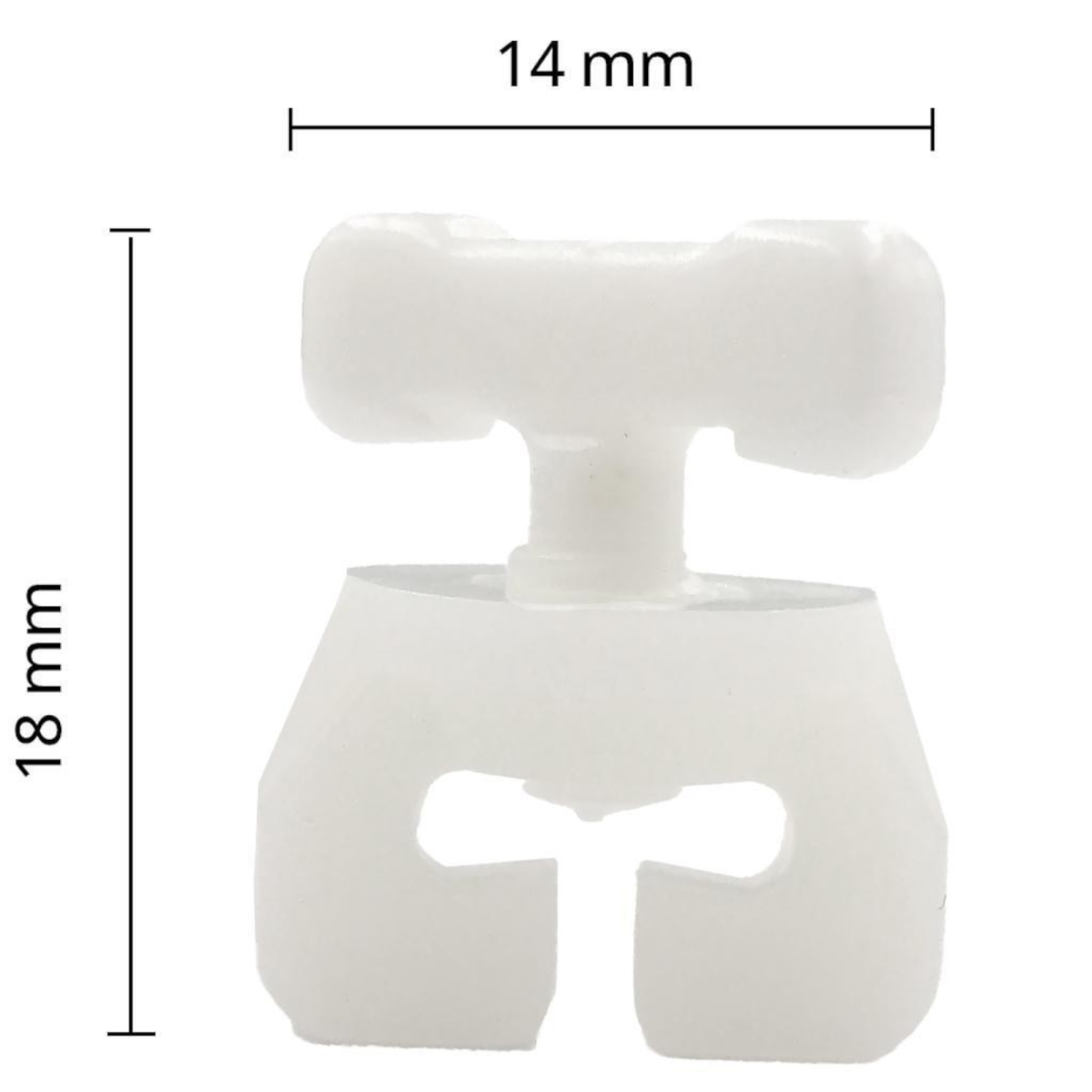 Függönyök rögzítésére alkalmazható. Fehér színben, műanyagból.