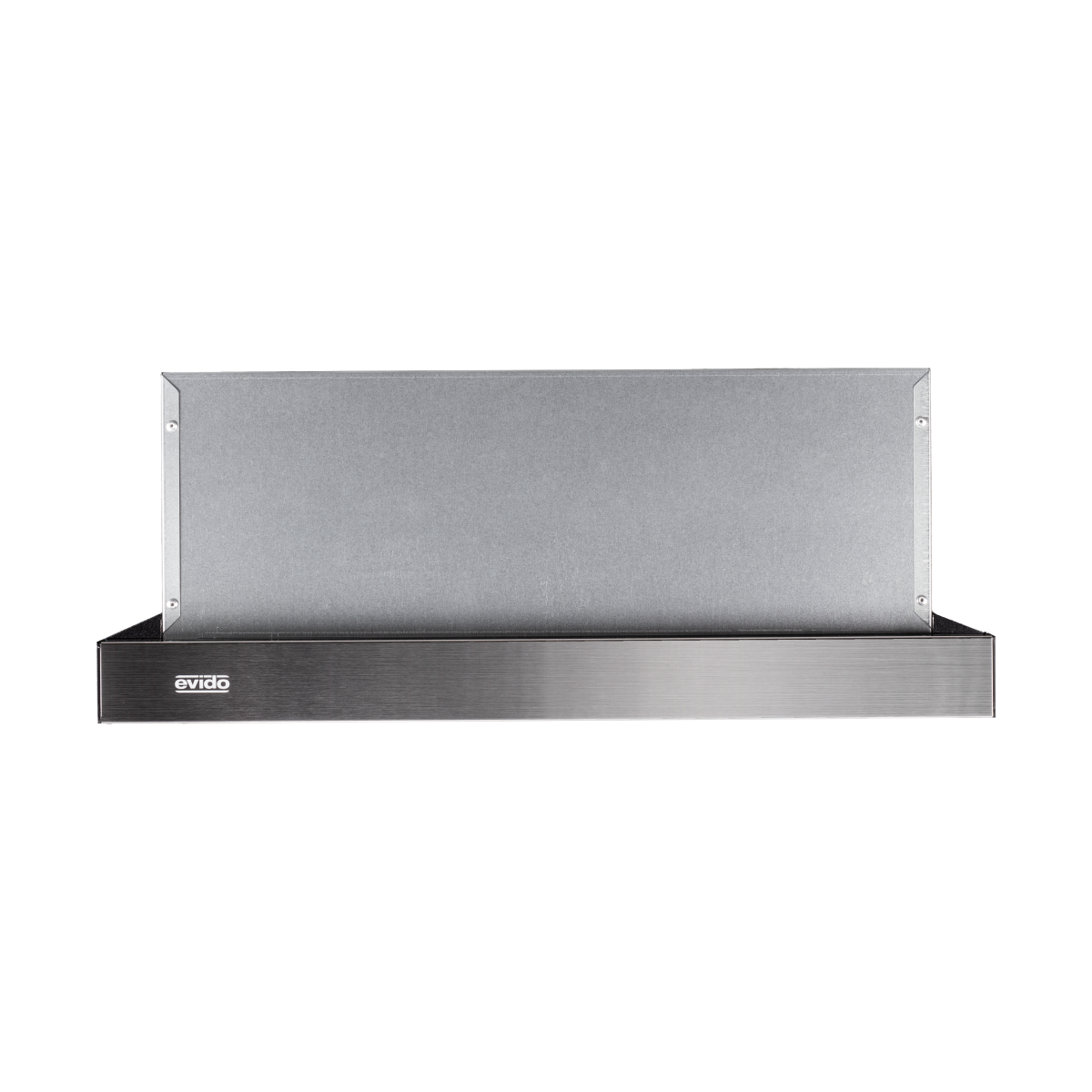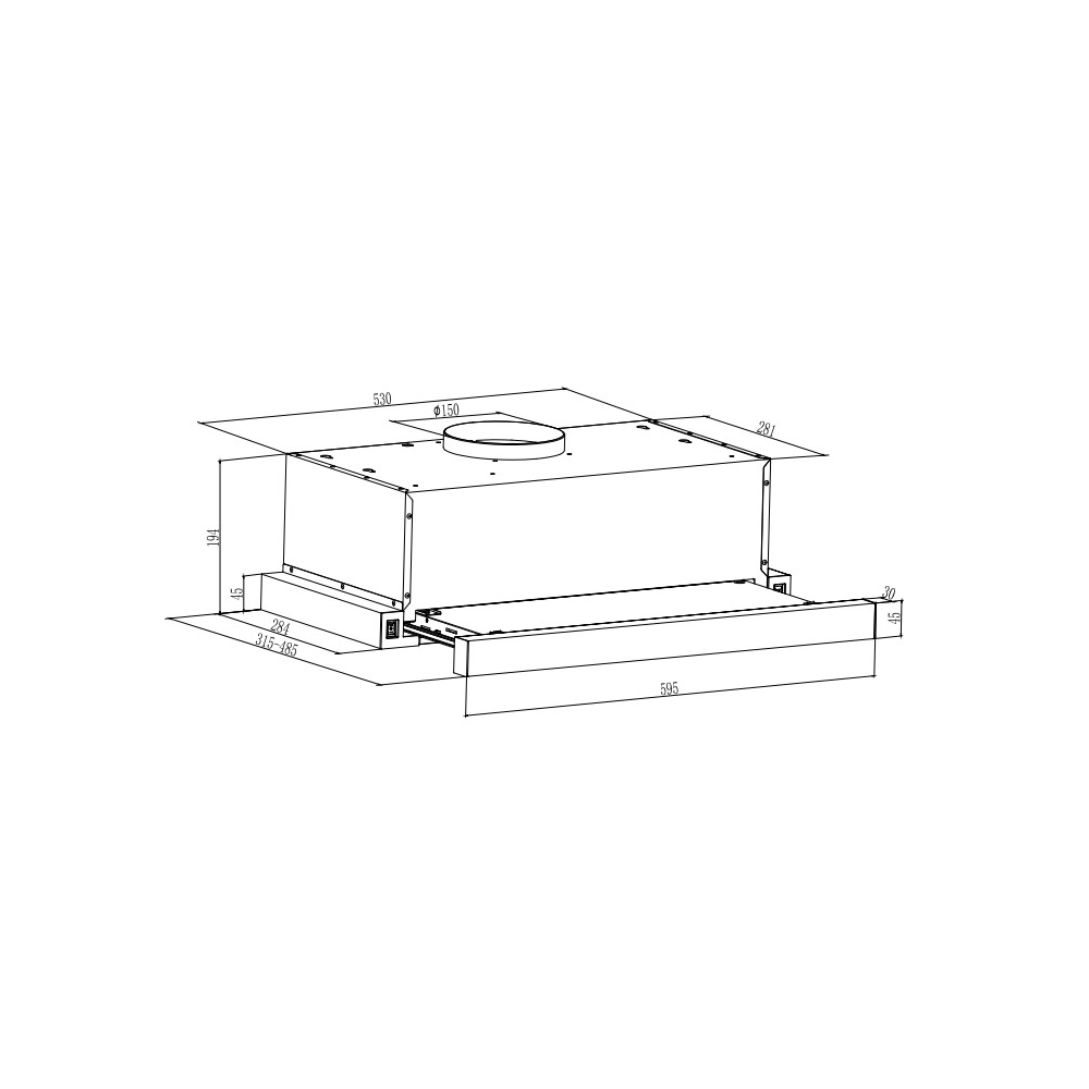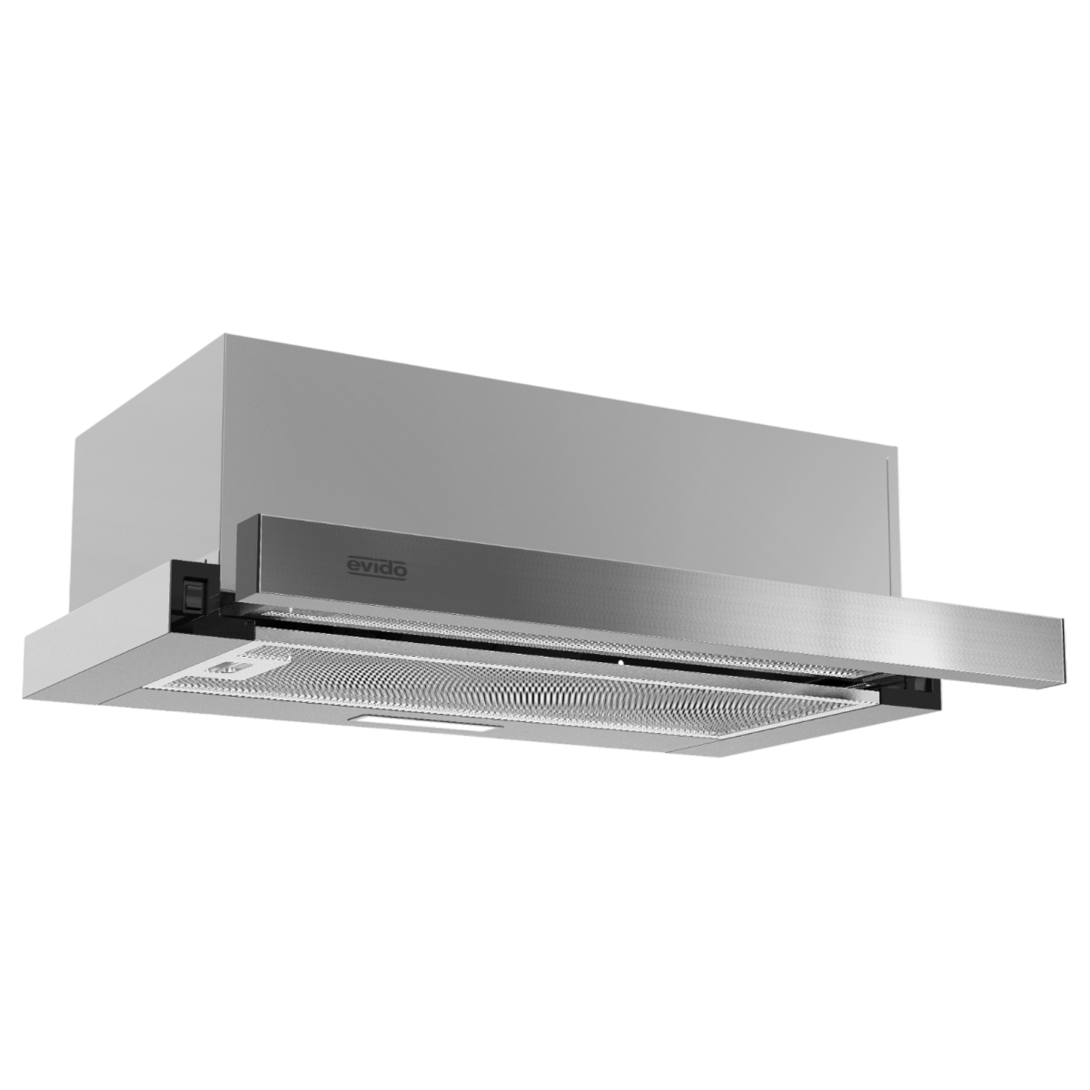 Beépíthető, teleszkópos kihúzható páraelszívó, 60 cm szélességgel, inox fronttal, felső kivezetéssel. Vezérlés: 2 fokozatú billenőkapcsoló. Csőcsonk mérete: Ø 150mm. Alumínium zsírszűrővel.