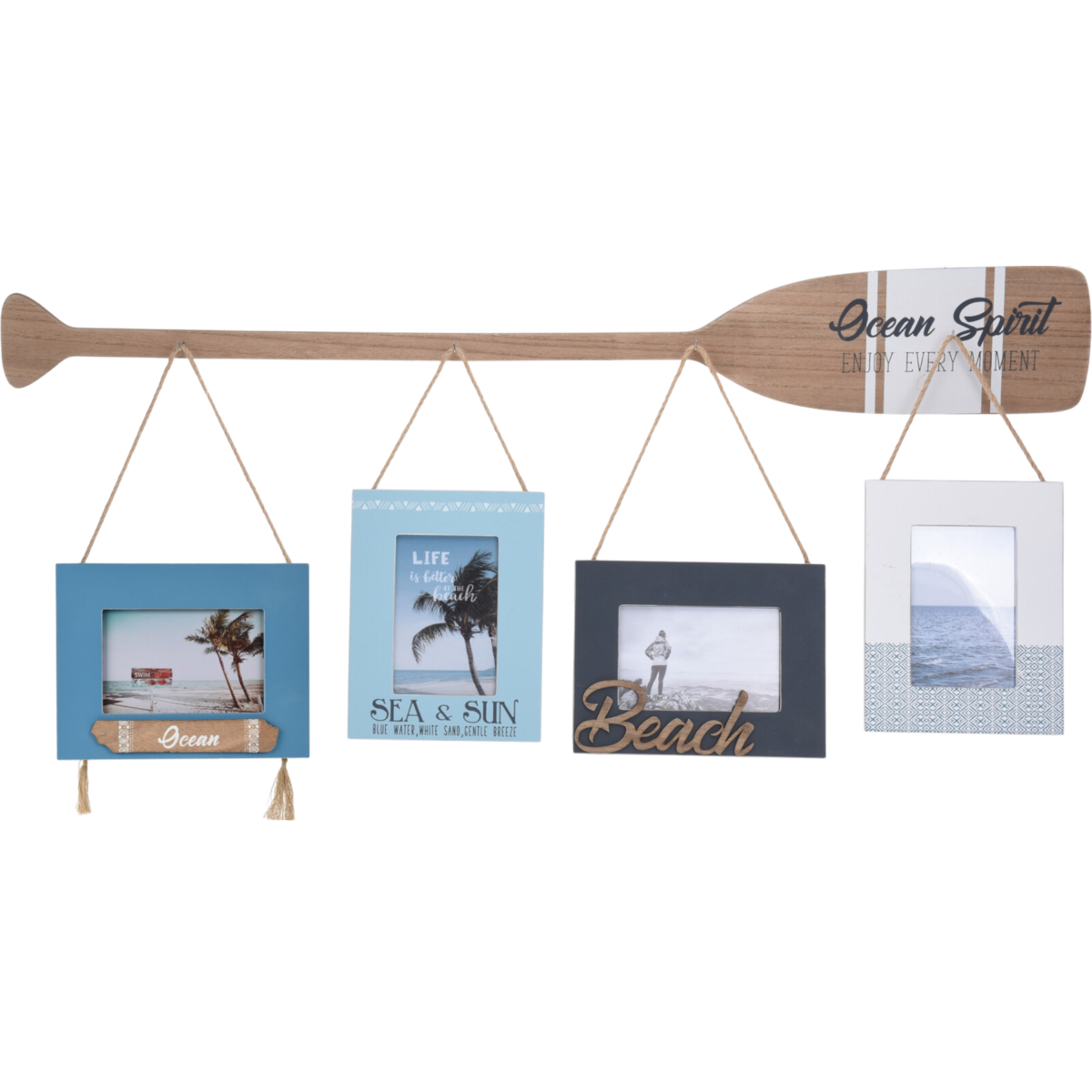 Ez a természetes hatású, fából készült, 4 részes képkeret tökéletes választás azoknak, akik szeretnék stílusosan elhelyezni kedvenc fotóikat egy kompakt, mégis látványos formában. A hosszúkás kialakítású keret négy darab 9 x 10 cm-es képnek ad helyet, így ideális családi emlékek, gyerekfotók vagy nyaralási pillanatok kiemelésére.