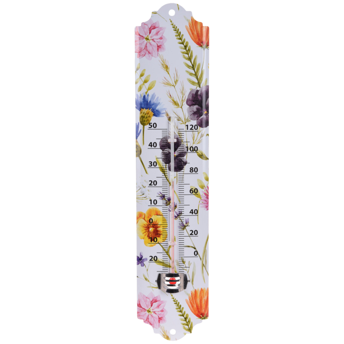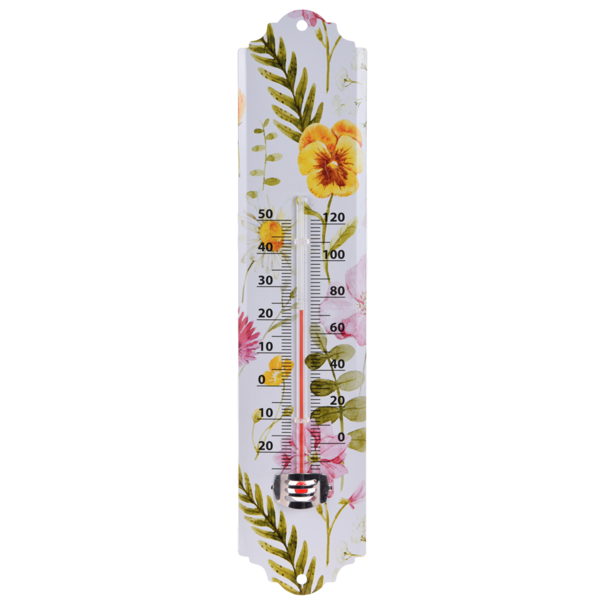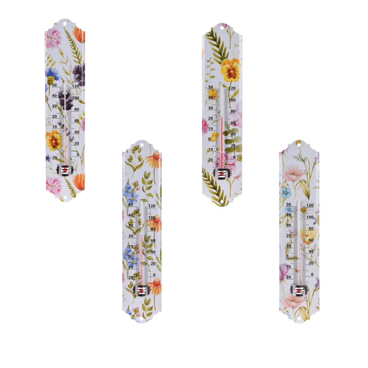 Ez a fém hőmérő egyszerű és megbízható megoldást kínál a hőmérséklet ellenőrzésére. Strapabíró fém kialakításának köszönhetően jól bírja a mindennapi használatot, klasszikus megjelenése pedig kültéren és beltéren egyaránt jól mutat. A különböző mintázatú modellek dekoratív kiegészítői lehetnek a környezetnek.