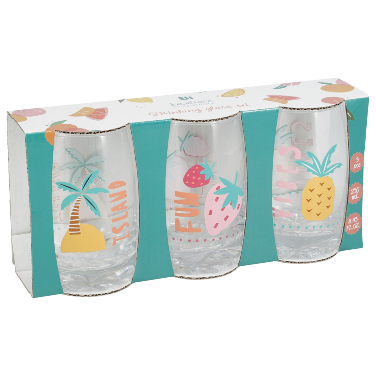 Ha egy praktikus, mégis dekoratív ivópohár készletet keresel, amely jól illik a mindennapokhoz és az alkalmakhoz is, ez a 3 darabos gyümölcs mintás szett remek választás. 🍓🍊🍍
