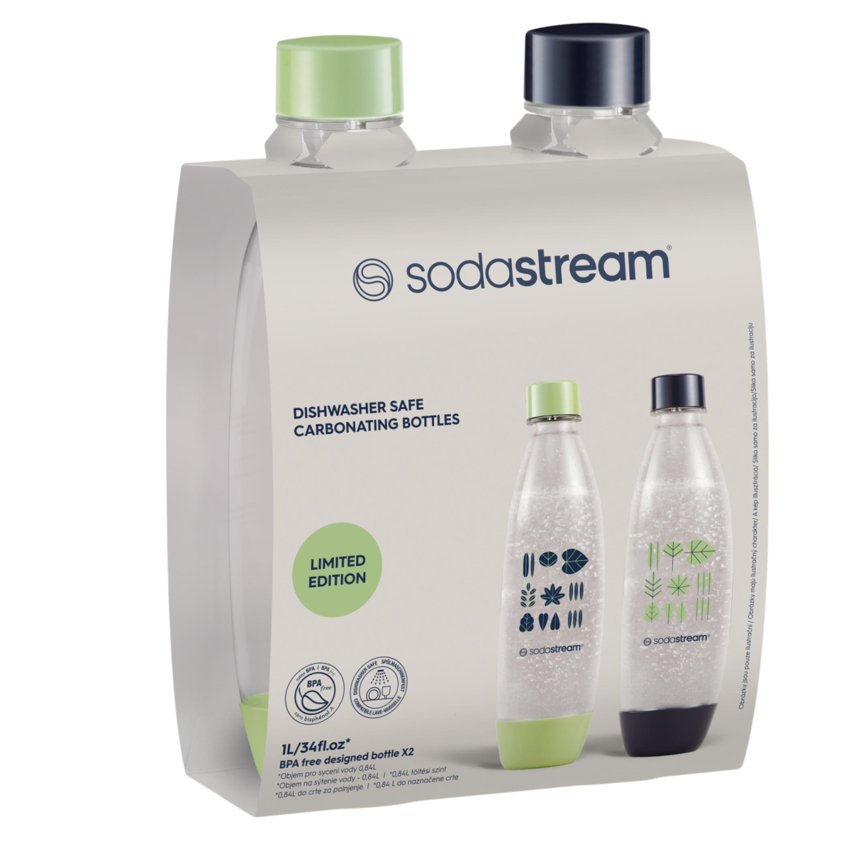 A Sodastream fuse duó palackszett két darab, egyenként 1 literes, különböző színű tritán palackot tartalmaz – az egyik zöld, a másik kék. Letisztult kialakításuk és mosogatógépben is mosható anyaguk miatt kényelmesen használhatók otthonodban. Kompatibilisek a legtöbb Sodastream készülékkel, így könnyedén beilleszthetők a napi rutinba.