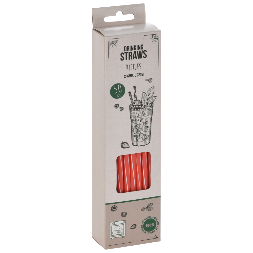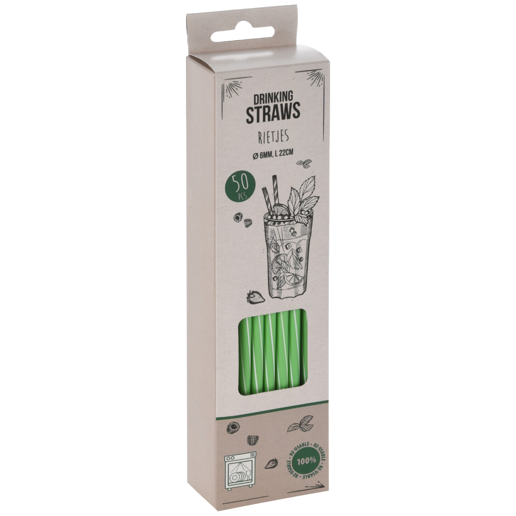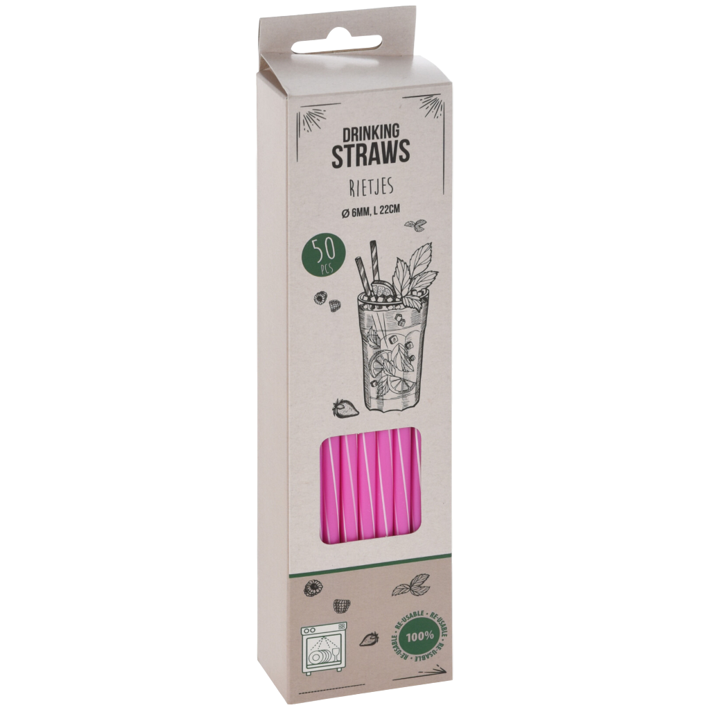 Ez az 50 darabos szívószál szett polipropilén anyagból készült, így alkalmas többszöri használatra. A 22 cm hosszúságú szívószálak hideg italokhoz ideálisak, kialakításuk egyszerű, könnyen tisztítható. A csomag négy különböző színű modellt tartalmaz, ami praktikussá és jól elkülöníthetővé teszi a használatukat.