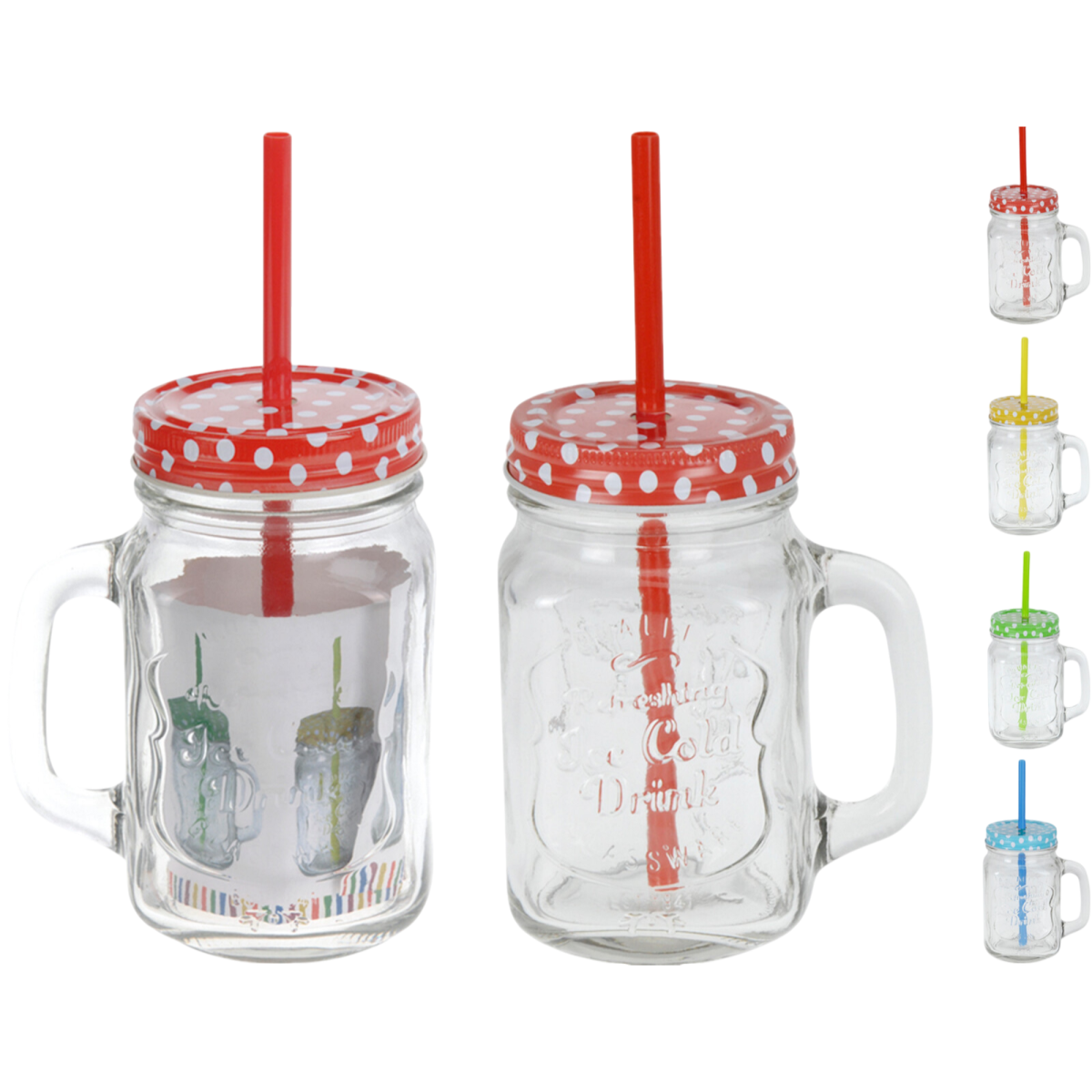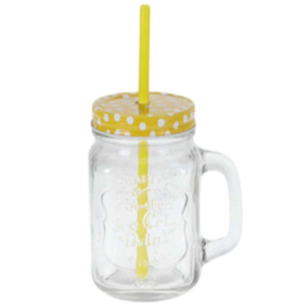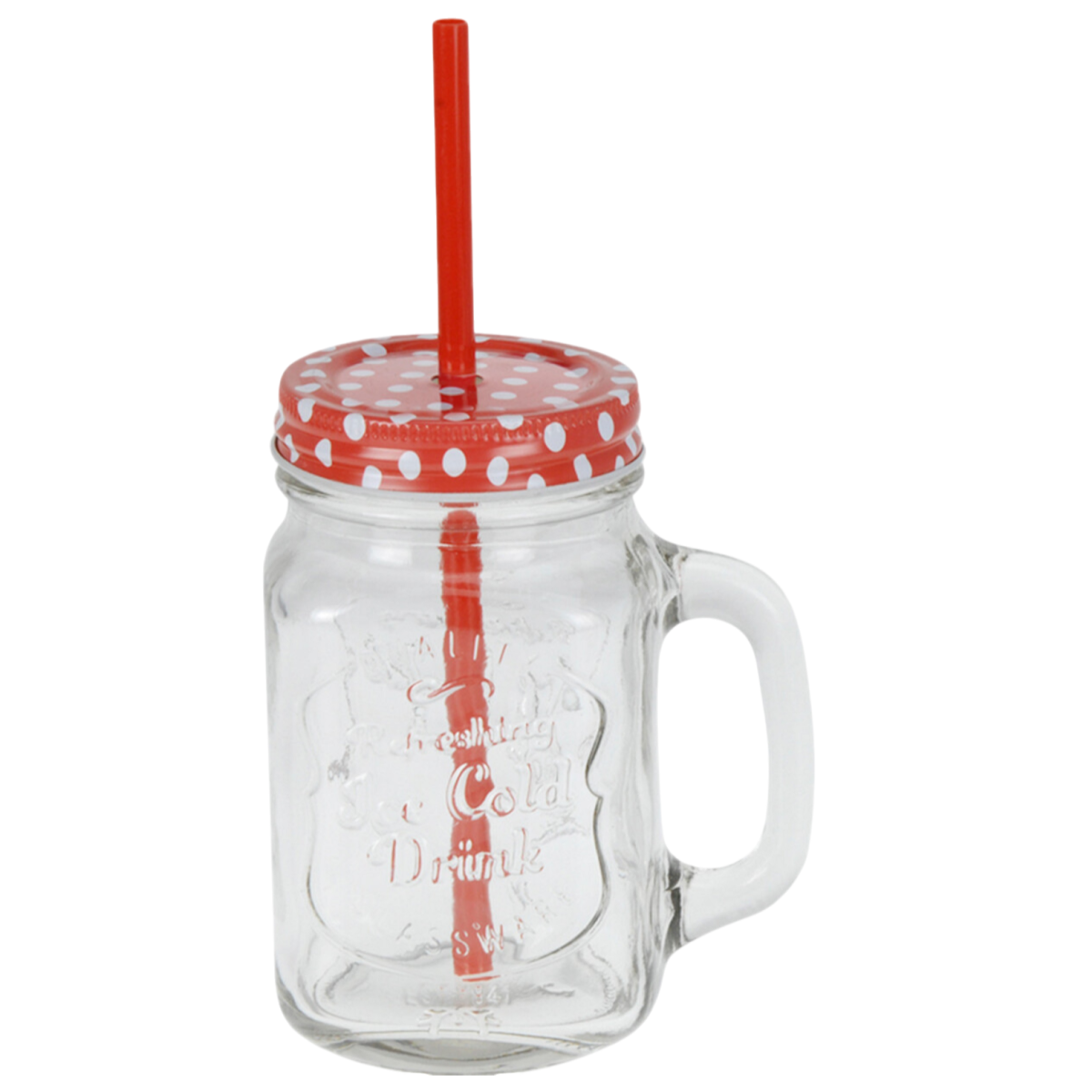 Ez a 450 ml-es szívószálas üvegpohár vidám pöttyös fém tetővel igazán stílusos és praktikus választás a nyári frissítők szervírozásához – legyen szó kerti partiról, piknikről vagy akár egy hétköznapi limonádéról az erkélyen.