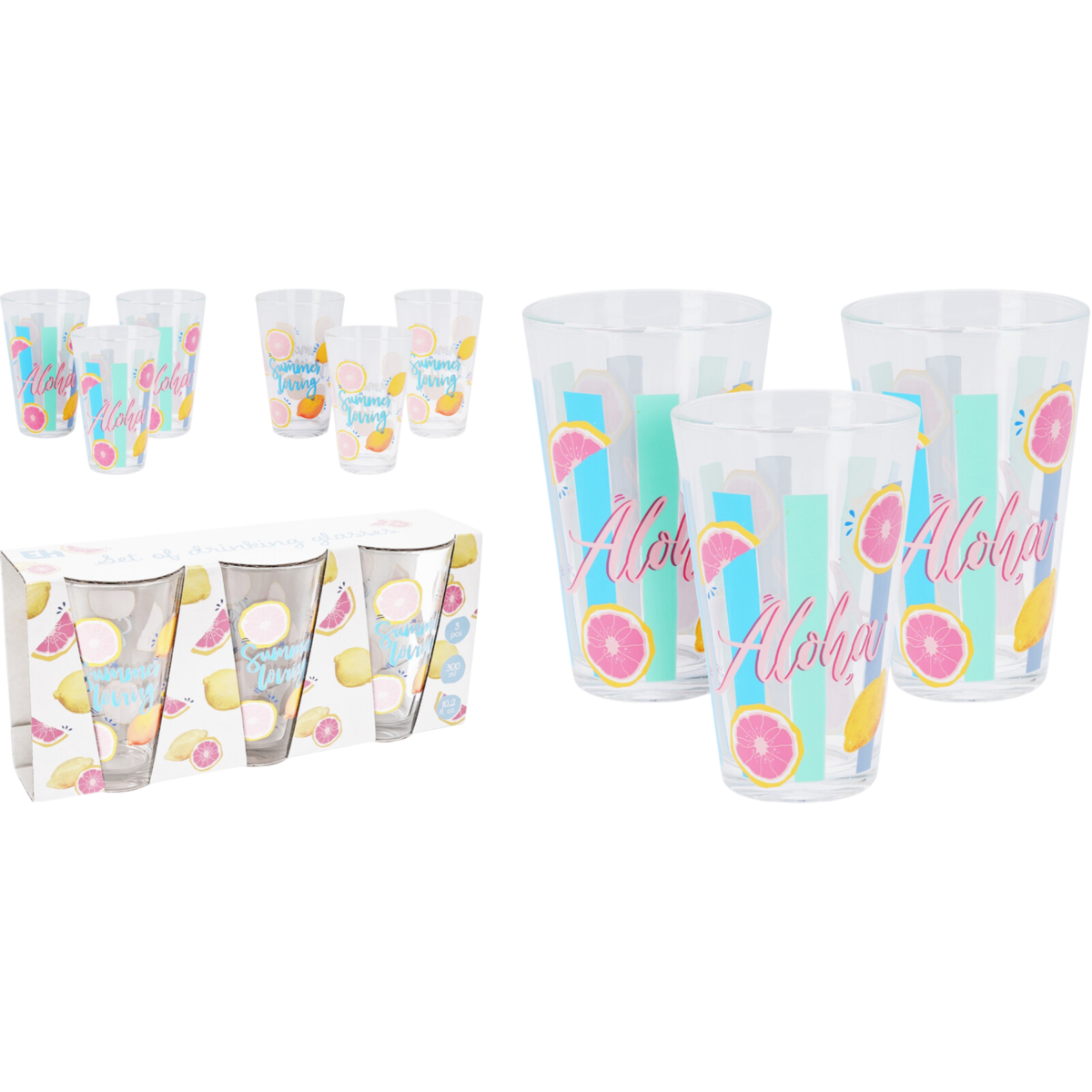 Ez a három darabos üvegpohár szett friss, vidám hangulatot visz a mindennapokba – praktikus mérettel és nyári stílusban.