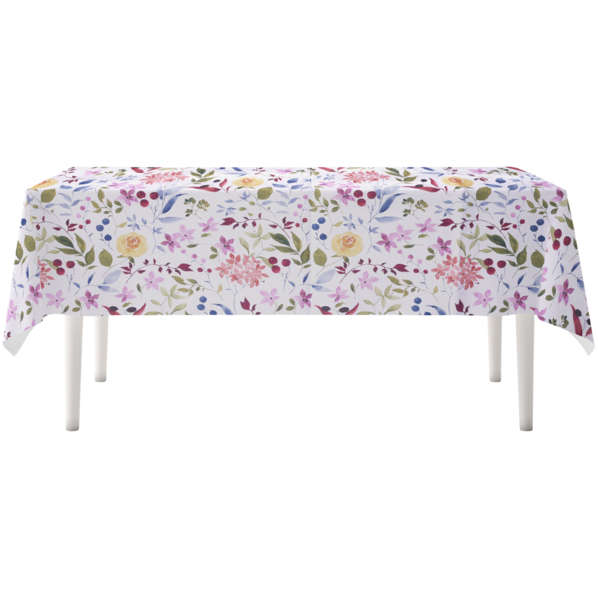 A 130 cm x 180 cm-es méret ideális közepes méretű asztalokhoz, a 100% poliészter alapanyag pedig praktikus megoldást kínál a rendszeres használathoz. A színes virágminta világos, barátságos hangulatot ad az étkezőnek.