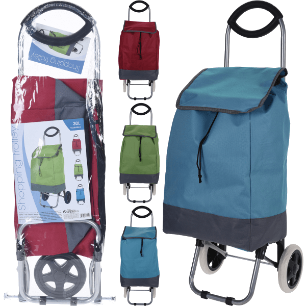 Bevásárlókocsi űrtartalom 30LTR, fém keretes, mérete 92X35X28CM,a táska mérete 53X32X20CM , max terhelhetőség: 20KG, 3 féle színben