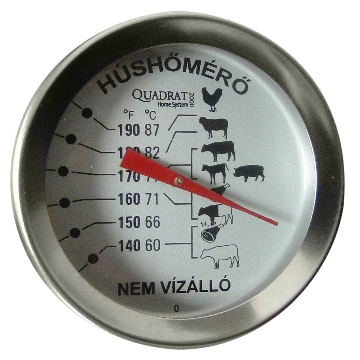 A hús belső maghőmérsékletéről tájékoztatja, így könnyebb a sütési idő meghatározása. A sütés akkor kész, ha a megfelelő szimbólum mutatója eléri a kijelzett hőmérsékletet. Átmérő: 5cm, tőhossz: 13cm.