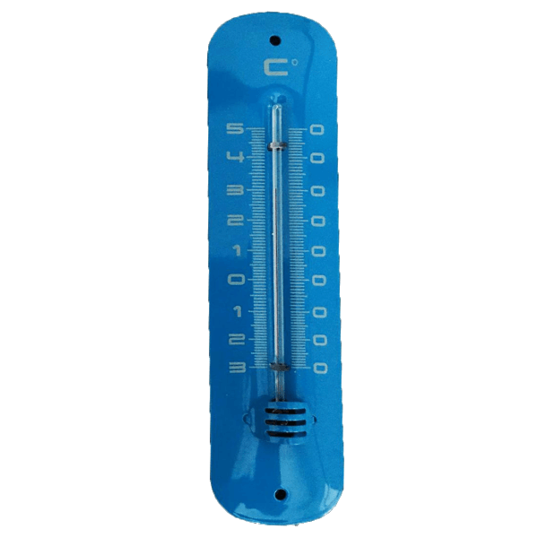 Kék fém hőmérő, mérete: 19,5x5 cm